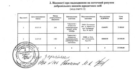 Мы посмотрели отчет на сайте ЦИК и выяснилось, что кандидат Урин получил 275 000 грн от юридических лиц и 44 998 грн – от физических лиц. Физических лиц трое, они внесли дважды по 14 999 грн и один раз – 15 000 грн.
