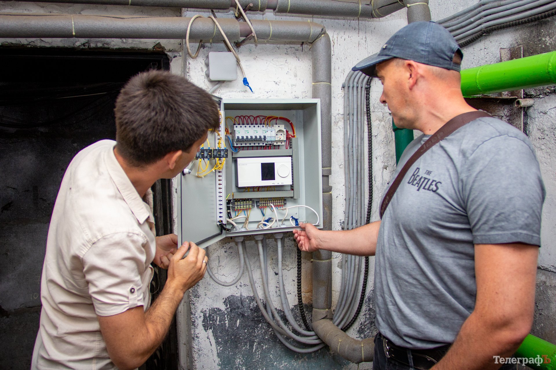 Олександр показав нам свіженький ІТП в будинку №52 на вулиці Лейтенанта Дніпрова. Це вже третій крок в енергозбереженні та термомодернізації у цьому будинку. Першими (коли співвласники холодної панельної 9-поверхівки лише створили ОСББ) стали реконструкція системи опалення та встановлення лічильника. У будинку верхня розводка опалення: коли мешканці верхніх поверхів потерпали від спеки, на нижніх поверхах люди мерзли. Тому систему опалення (циркуляцію теплоносія) розділили на два контури: 1-3 поверхи та 4-9. Будинок став прогріватися більш рівномірно.