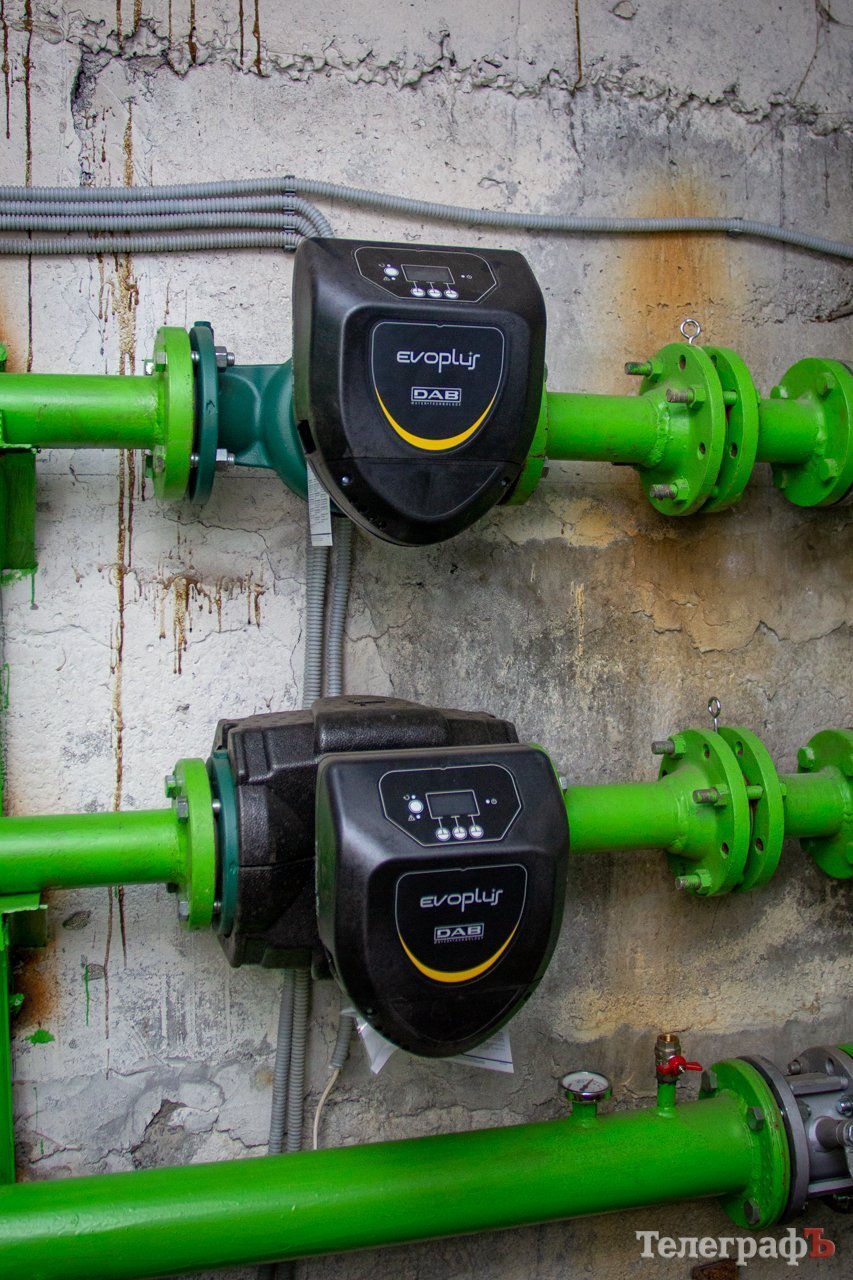 У системі ІТП встановлені насоси з частотними перетворювачами струму, для економії електроенергії. Вони автоматично перемикаються раз на добу. Обидва робочі, і якщо один вийде з ладу, інший працюватиме.