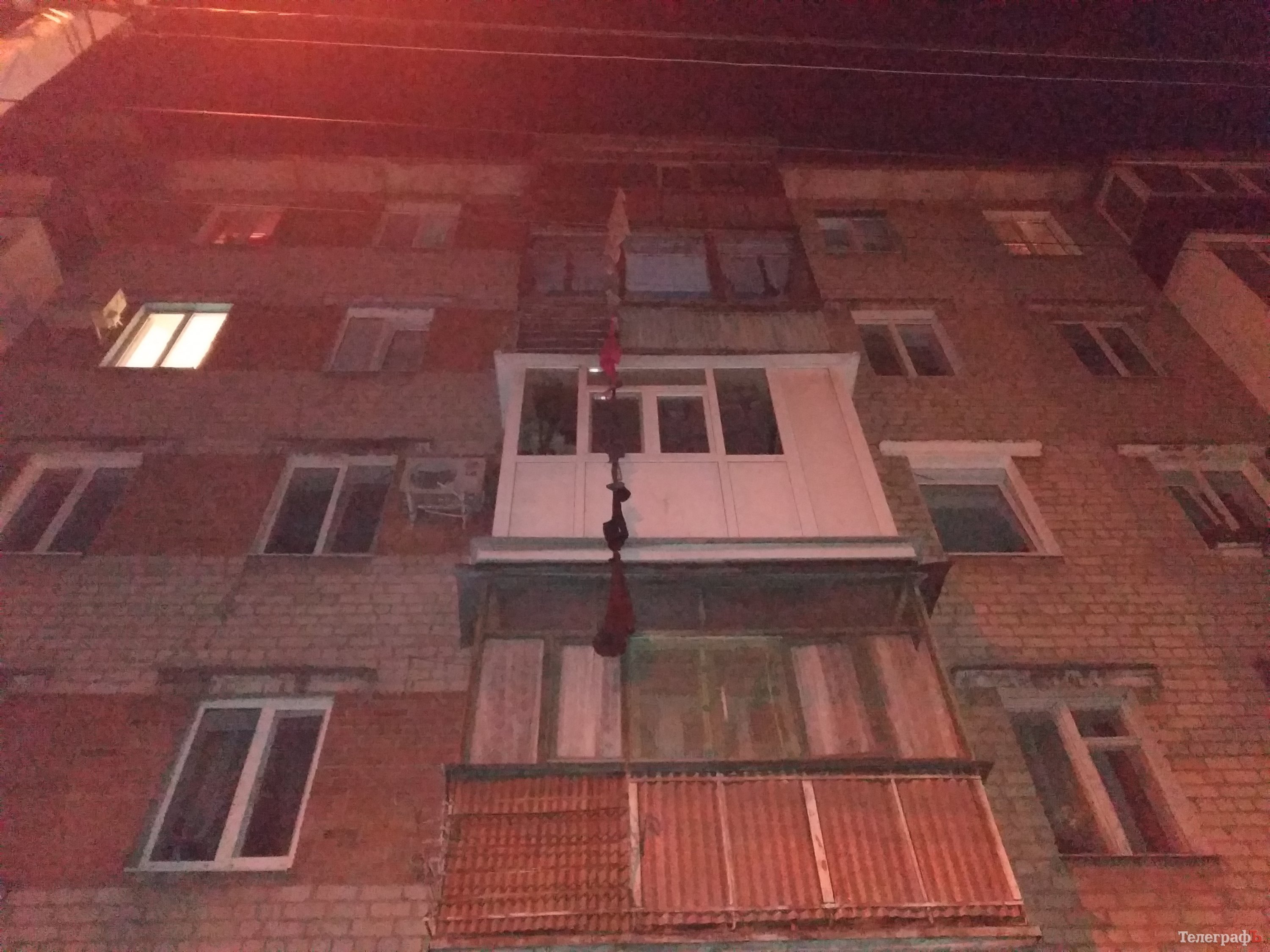 21.45. З вулиці Горького, з будинку №17, повідомили, що з балкону 5 поверху висить зв’язка речей. Підіймаємося до квартири, з якої ймовірно висить ганчір’я.