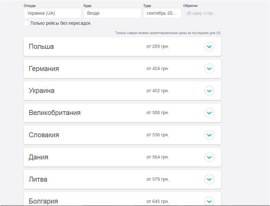 - Поиски обратного билета. Чаще всего приятные цены ждут только в одном направлении. Когда начинаешь искать обратный билет, цены печалят. Если туда билет 300, то обратные вылеты в течение недели будут дорогими. Как вариант, посмотреть, куда дешево можно улететь в эти дни. Например, из Вены долететь в Варшаву, а там поймать дешевый рейс на Киев. Просто комбинировать рейсы.