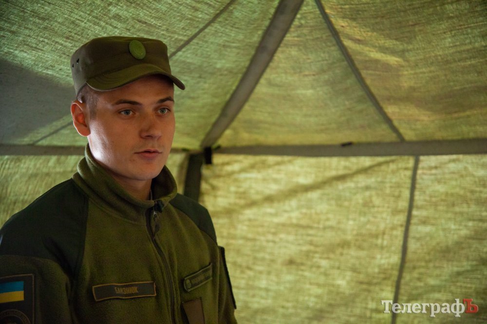 Потім ми поспілкувалися з одним з контрактників, які прибули у частину на військові збори. Ним виявився 22-річний солдат Юрій, він відслужив строкову службу у Національній гвардії тут же, у військовій частині 3059, а 22 травня цього року у нього був дембель. Юрій тутешній, живе у Кременчуці, працює слюсарем та ремонтує фури. Після дембелю він вирішив підписати контракт на резервіста на 3 роки.