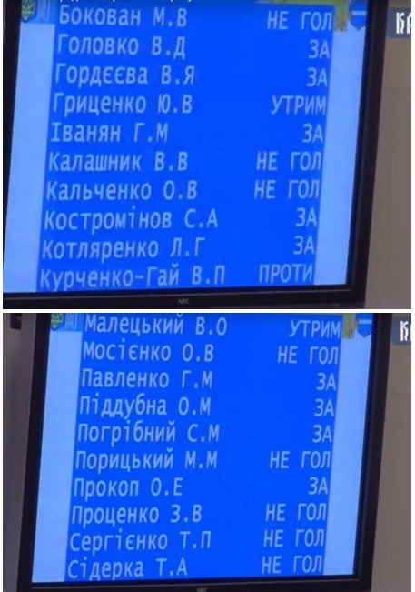 Результаты голосования за предложение Пиддубной снизить тарифы