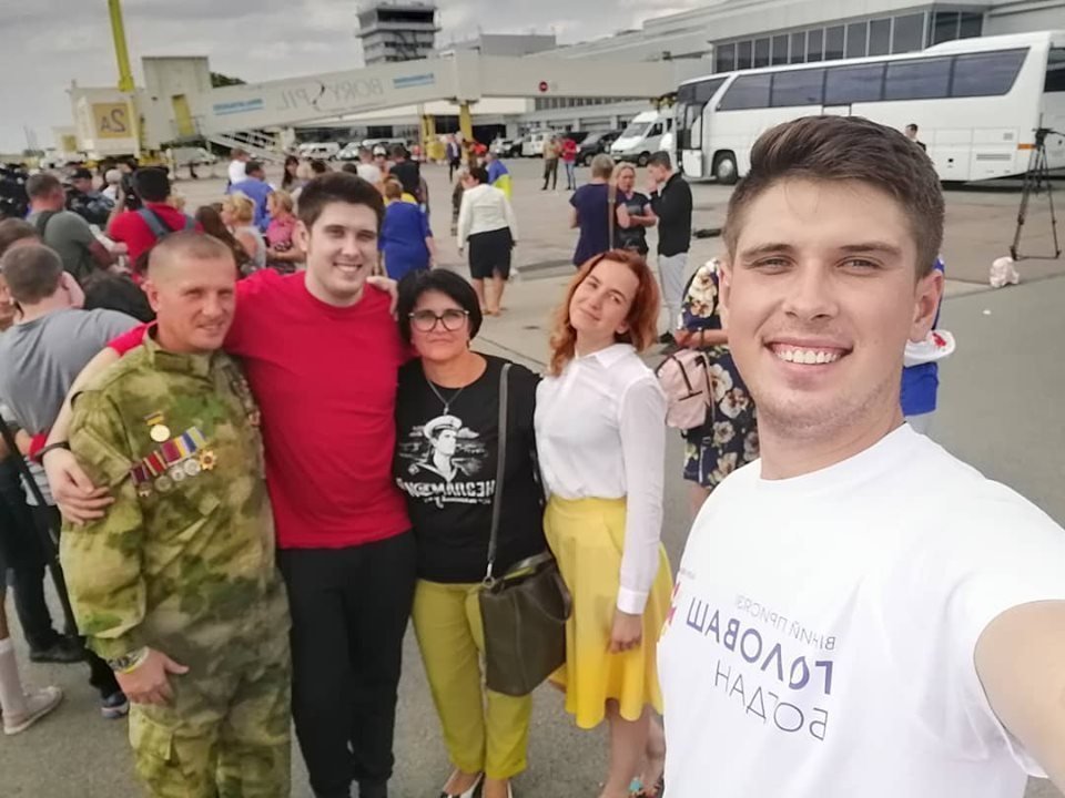 Назад в автобусі до аеропорту їхали з Олегом Сенцовим та побратимами, де хлопці між собою жартували та ділилися враженнями.