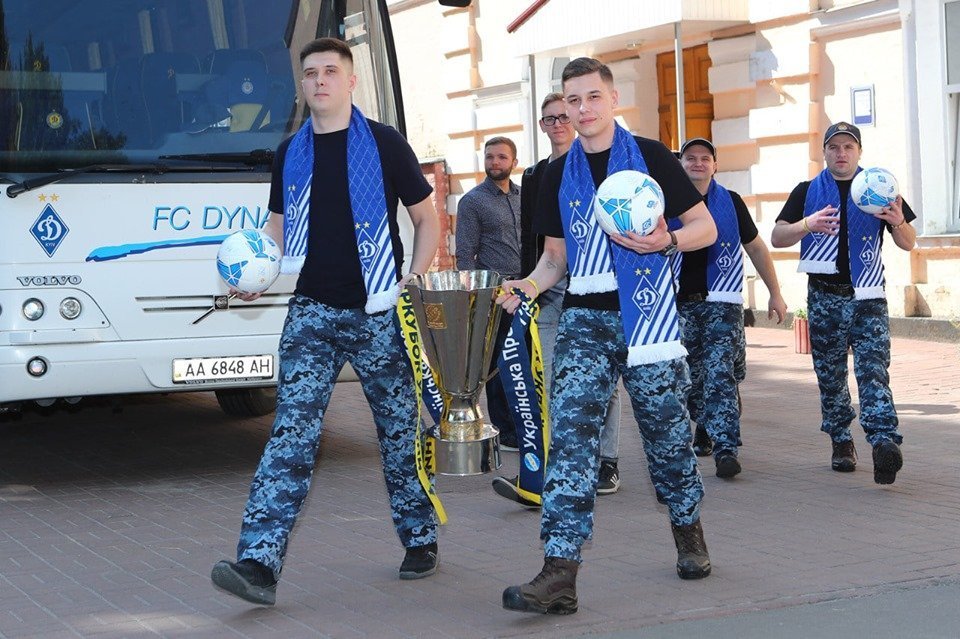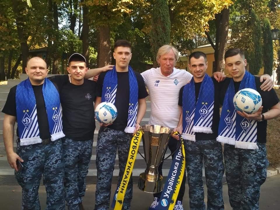 Гравці та головний тренер на зустріч зі звільненими з полону моряками захопили з собою кубок переможців та сувеніри: атрибутику та форму.