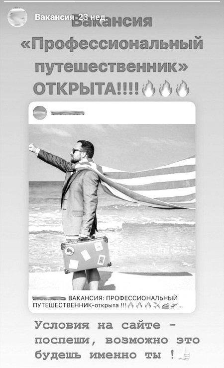 А компания при этом в самом опроснике предлагала зайти к ней на сайт поискать инфу: пиарила свой сайт. В итоге, сама вакансия оказалась отличным маркетинговым ходом. С нуля они получили около 6 тыс подписчиков в инсте. А потом заявили, что заявок было так много – 50 тысяч, что решили объявить второй отборочный тур. И те, кто получит от них «письмо счастья», должны разместить рассказ о любом своем путешествии на странице компании, в блогах. И во второй тур прошли вообще все, кто заполнил анкету. То есть, так эта тревелкомпания убила «двух зайцев» – увеличила число подписчиков, пропиарилась и наполнила свой сайт живыми блогами на шару. Но самое интересное, что в итоге эта контора вообще поменяла правила и условия. И вместо одного человека, который работает за зарплату, решили выбрать 12 человек, которые по очереди просто отправятся в путешествие за счет компании. А это уже не работа, а так, бонусная поездка вроде волонтерской программы.