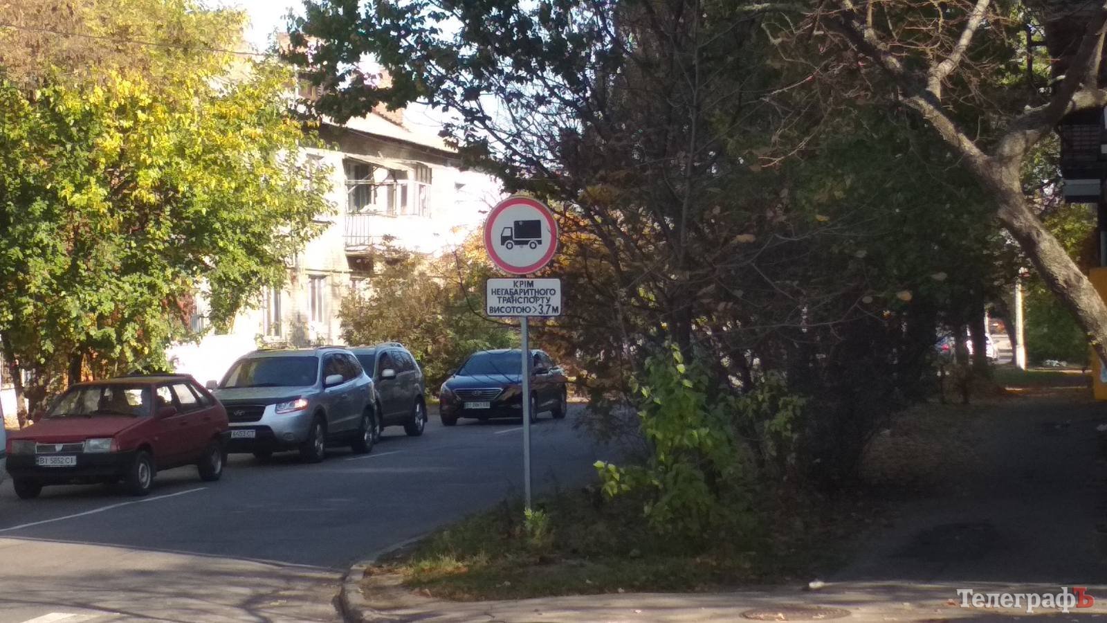 При этом, на ул. Николаевской, куда с Крюковского моста поворачивают грузовики, висит знак, что при повороте направо на ул. Шевченко будет проезд с ограничением высоты 3,7 м. На перекрёстке ул. Николаевской и Шевченко висят знаки о том, что транспорт высотой больше 3,7 м должен ехать прямо или налево, но никак не направо к злополучному путепроводу.