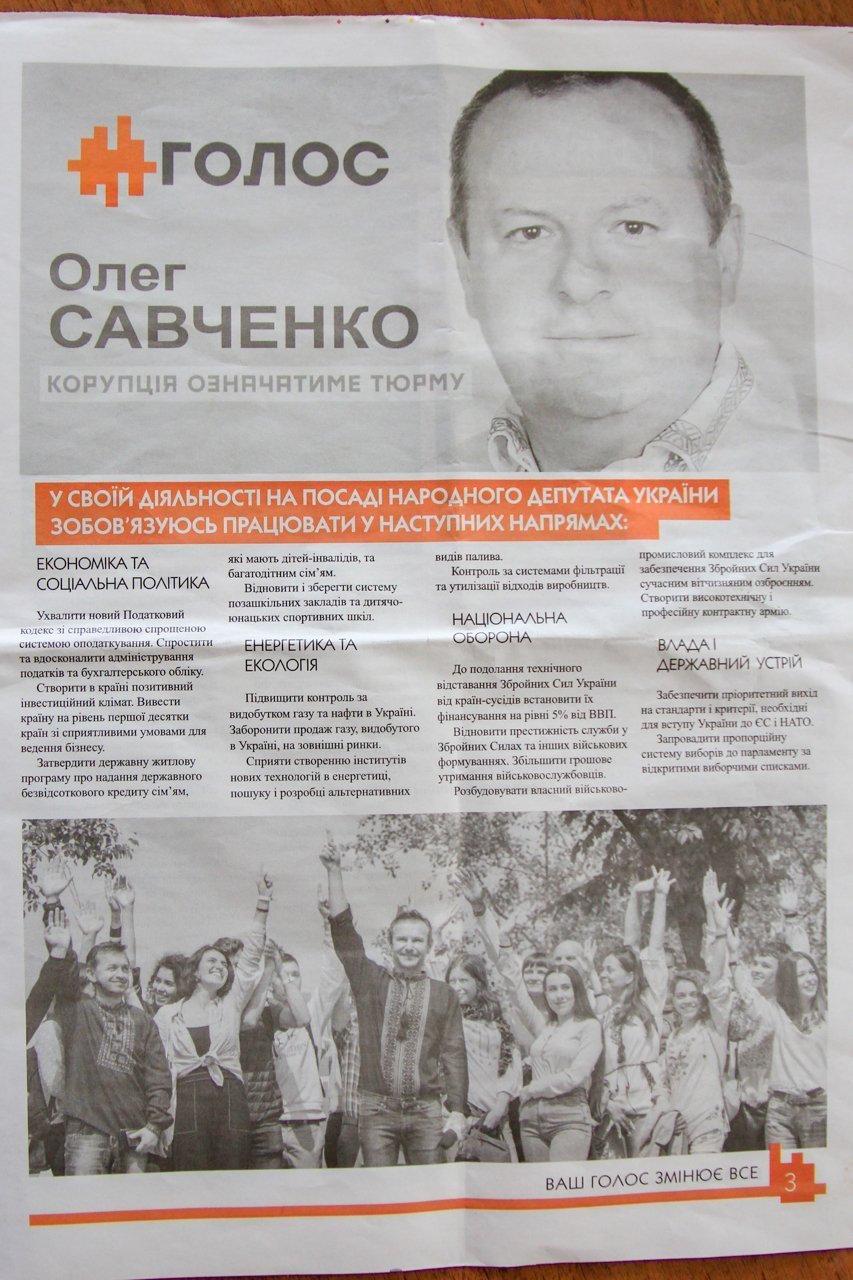 После этого Савченко зарегистрировался кандидатом в народные депутаты. Он шел самовыдвиженцем, но зато директором ПП «Голос!».