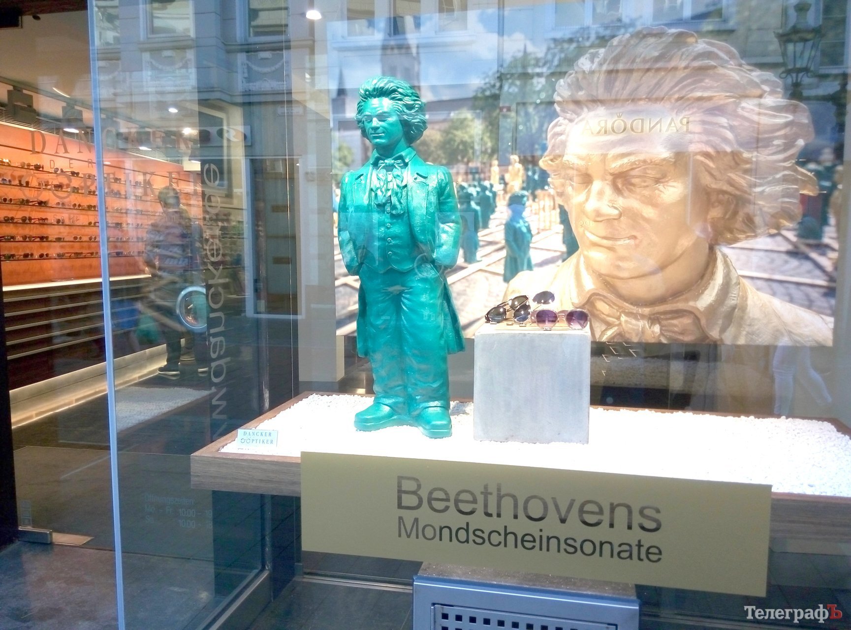 Але головне — маленькі Бетховени тут всюди! Цього року Бонн відзначив 250-річчя з дня народження композитора. До цієї дати виготовили цілих 700 невеличких скульптур усміхненого Бетховена (хоча його зазвичай зображують похмурим) та виставили їх біля підніжжя пам’ятника. Потім скульптури викупили — маленькі Бетховени розбрелися містом та прикрасили вітрини магазинів і сувенірних крамничок. Так прагматичні німці перетворили композитора на продавця окулярів, взуття та іншого краму — на радість туристів.