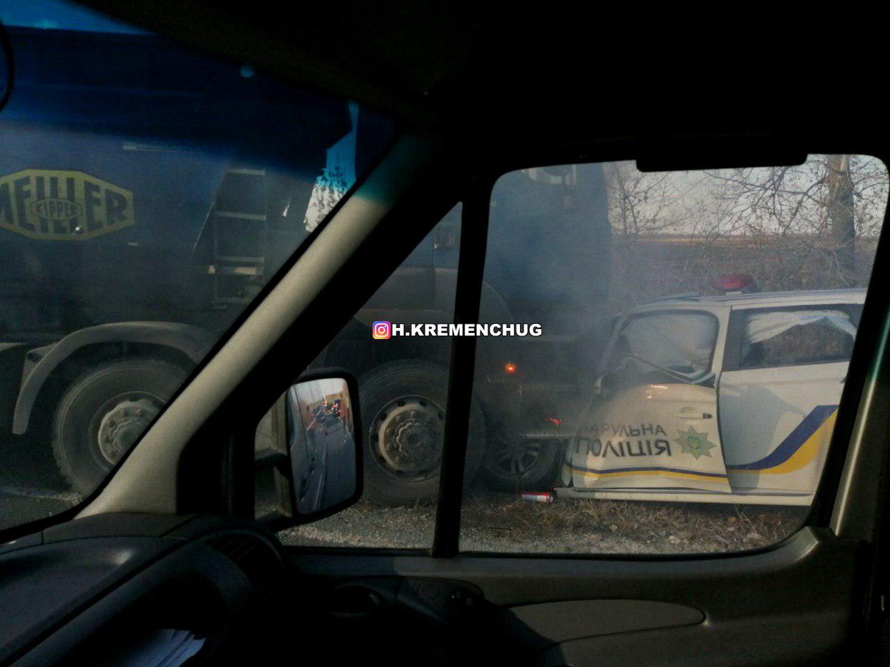 Как сообщили в патрульной полиции Кременчуга, водителю грузовика 23 года. Патрульным в экипаже – по 35 лет. У них ушибы, рассечение на лицах, переломы пальцев рук.