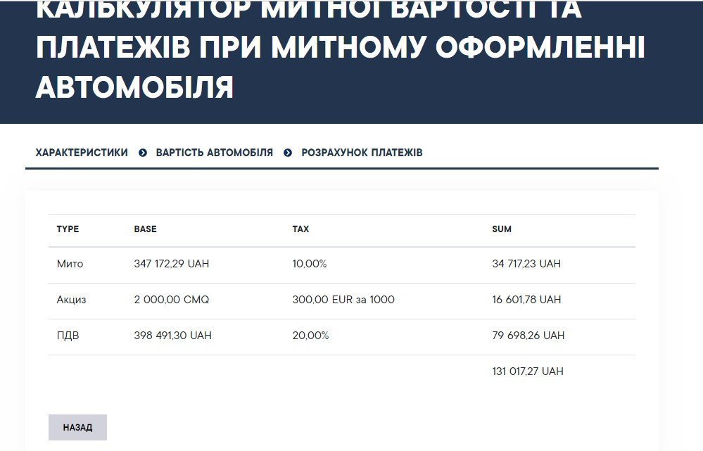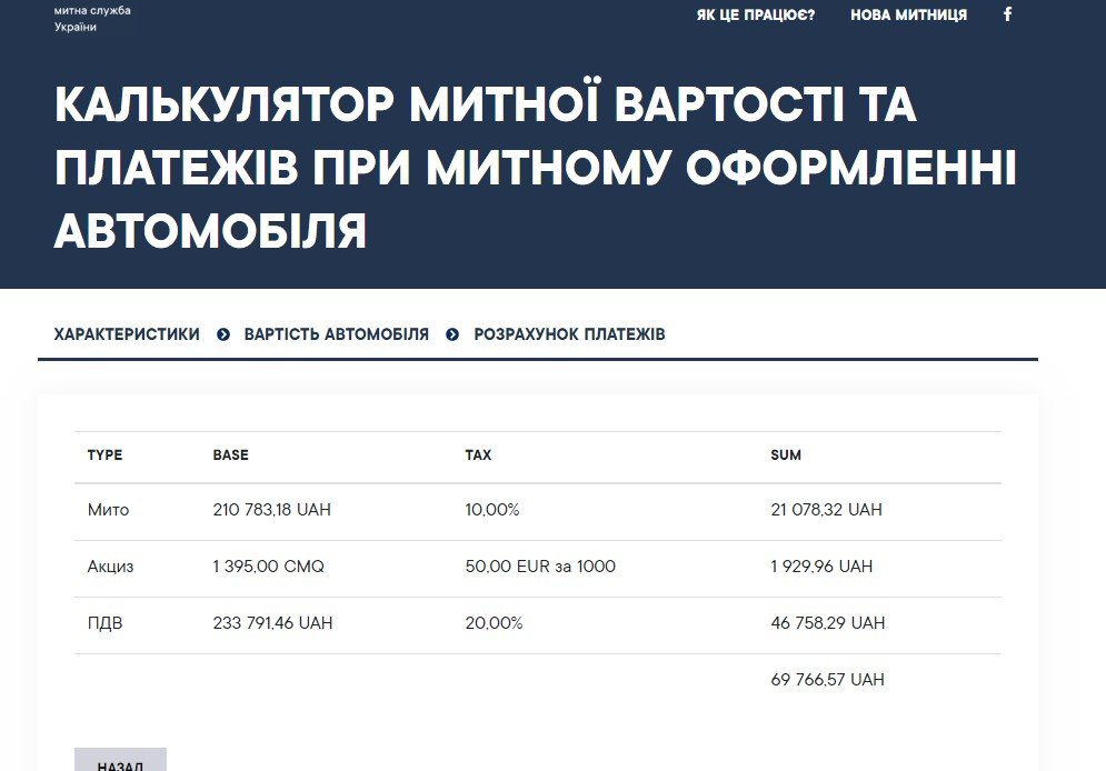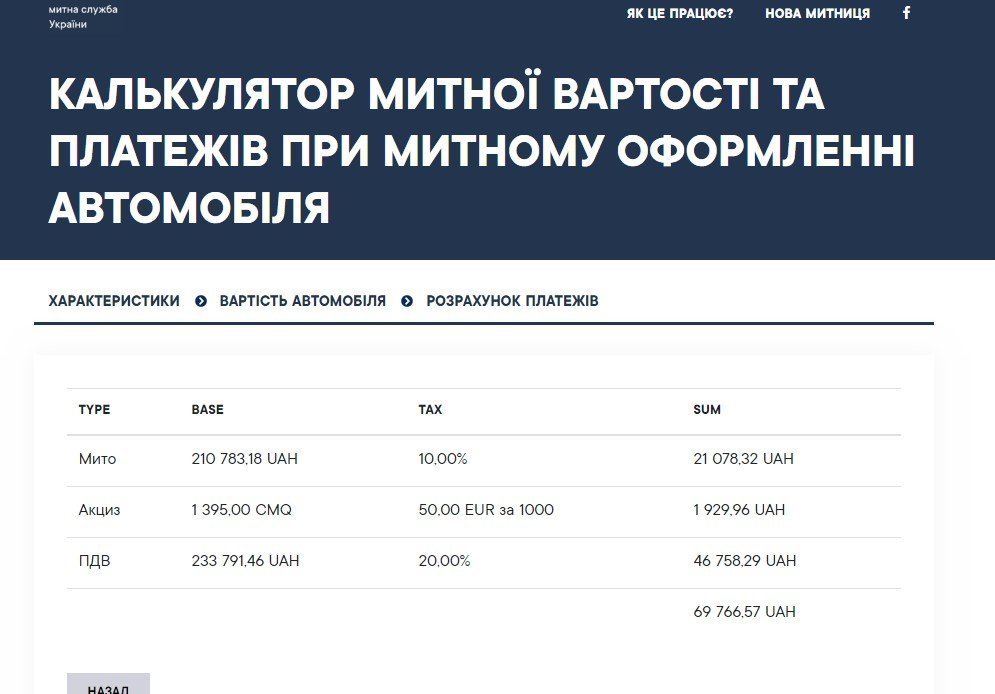Днями Державна митна служба України запустила калькулятор митної вартості та платежів при митному оформленні автомобілів. За допомогою цього калькулятора особи, які хочуть «українізувати» машину на єврономерах, можуть дізнатися вартість розмитнення.