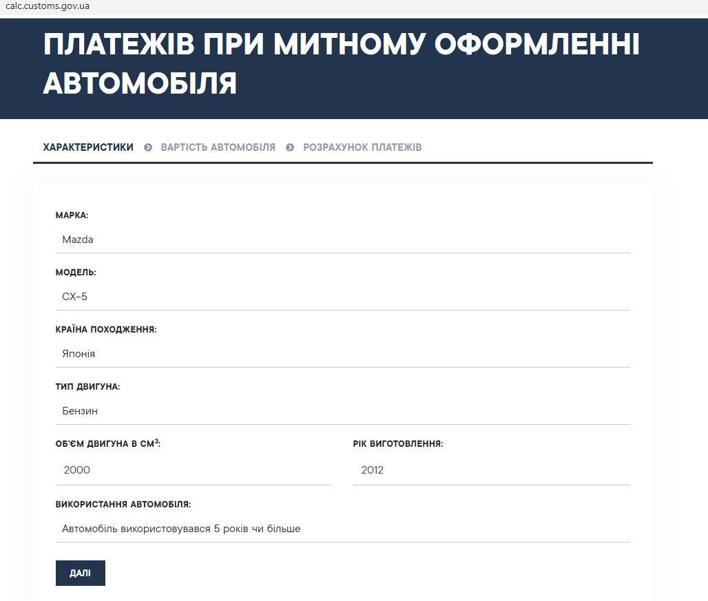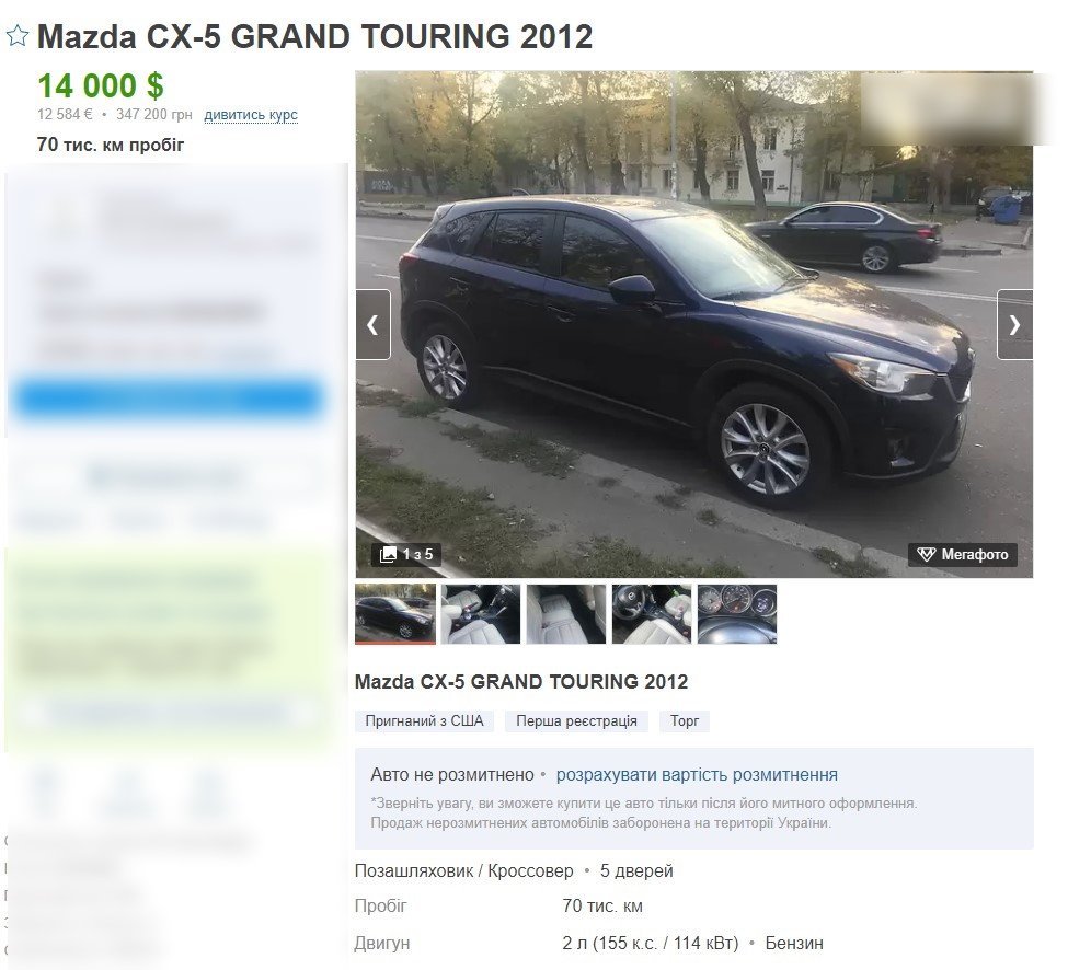 Результат: Mazda CX-5 Grand Touring 2012 вартістю 14 000 доларів (347 200 грн). Розмитнення обійдеться власнику в 131 тисячу гривень.