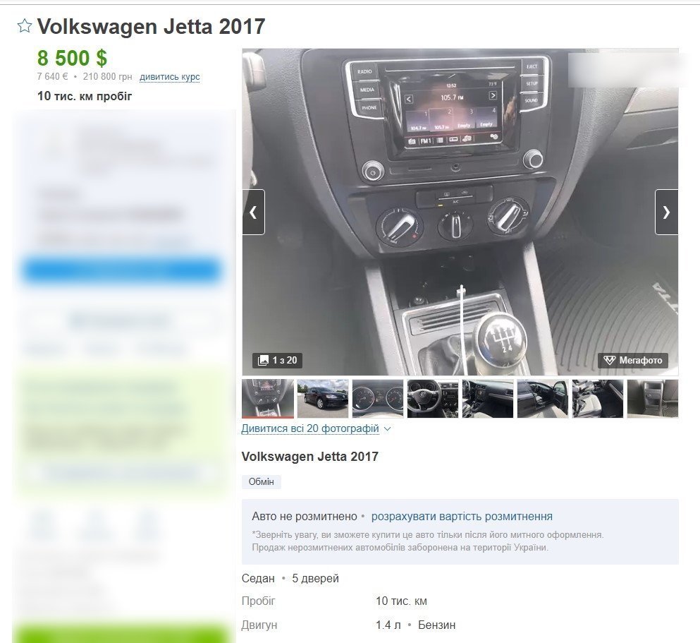 Результат: розмитнити Volkswagen Jetta 2017 за ціною у 8 500 доларів (210 800 грн) обійдеться в майже 70 тисяч гривень.