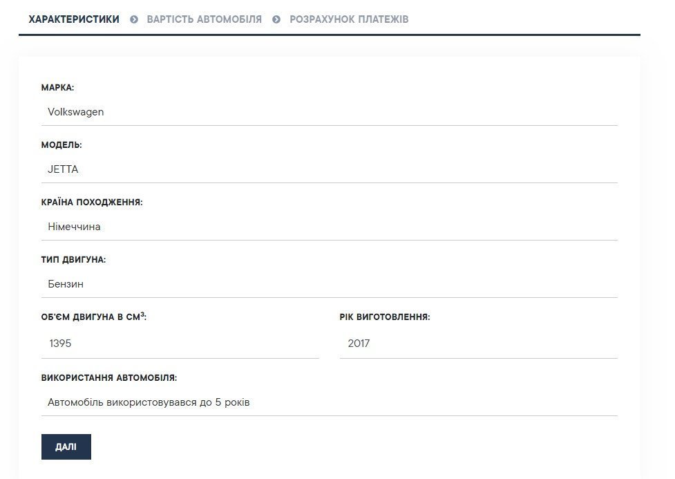 * – у цьому випадку вводили дані, що автомобіль використовувався менше 5 років