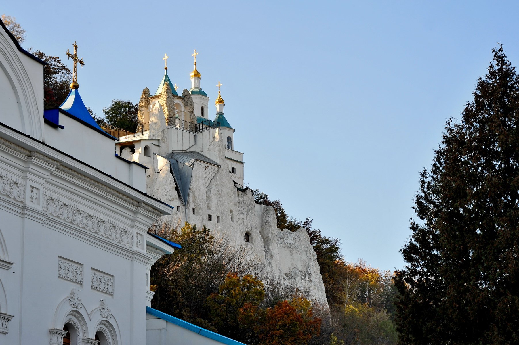 Трохи вище самої лаври на горі збудована церква святителя Миколая – вона наче виростає із крейдяної скелі. Біля храму влаштований верхній оглядовий майданчик, на який можна піднятися пройшовши скрізь ходи в крейдяній горі та відвідавши підземні каплиці і церкви – все як у Києво-Печерській лаврі. Краєвиди для туристів та паломників з оглядового майданчика відкриваються неймовірні – золотисті купола церков, вигин річки, ліс та селище. А спуститися до підніжжя гори можна по живописній дорозі, милуючись красотами національного природного парку «Святі Гори», що оточує лавру. Я сам народився і виріс на Донбасі, але ніколи не думав що тут є така краса!