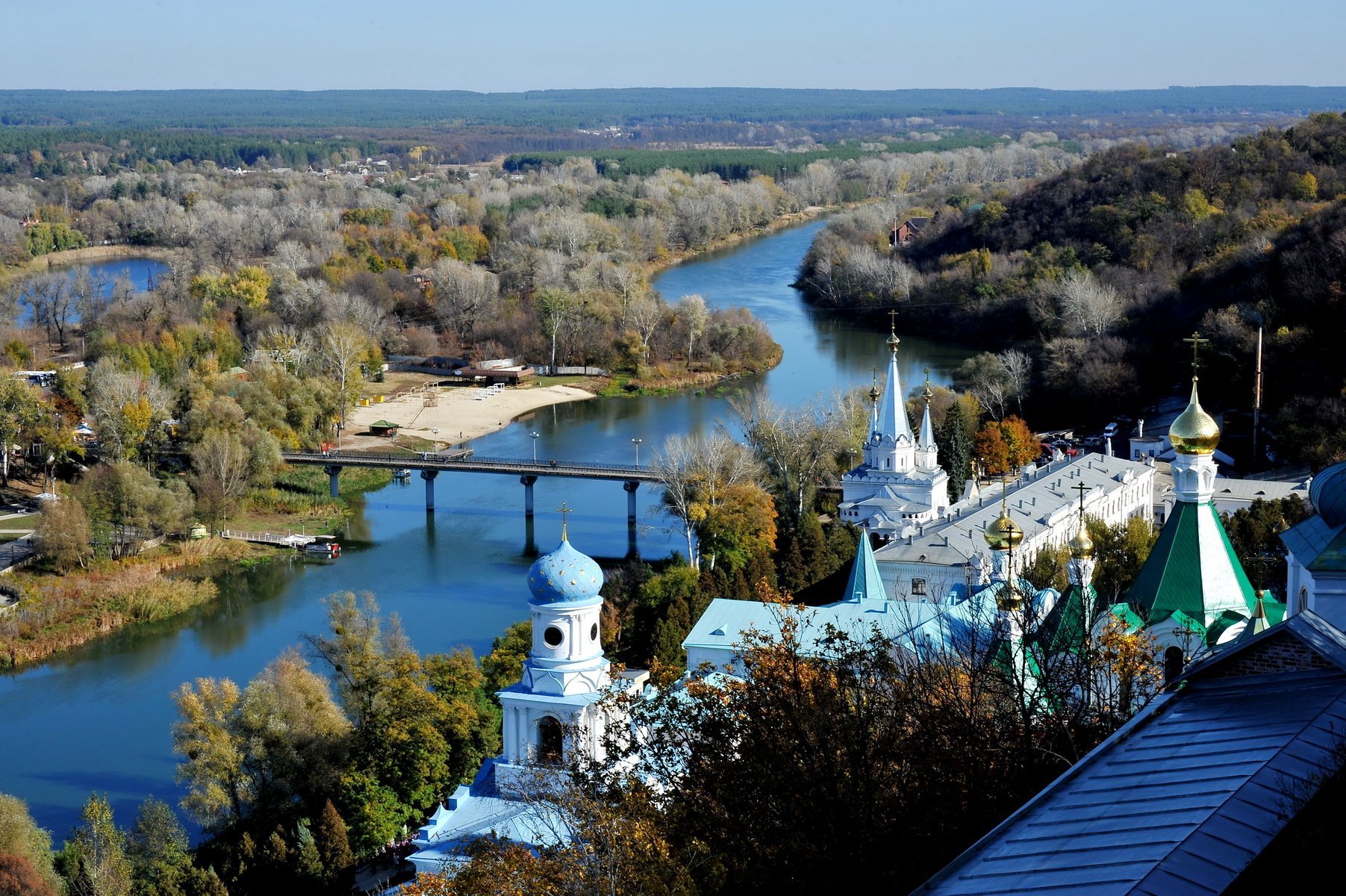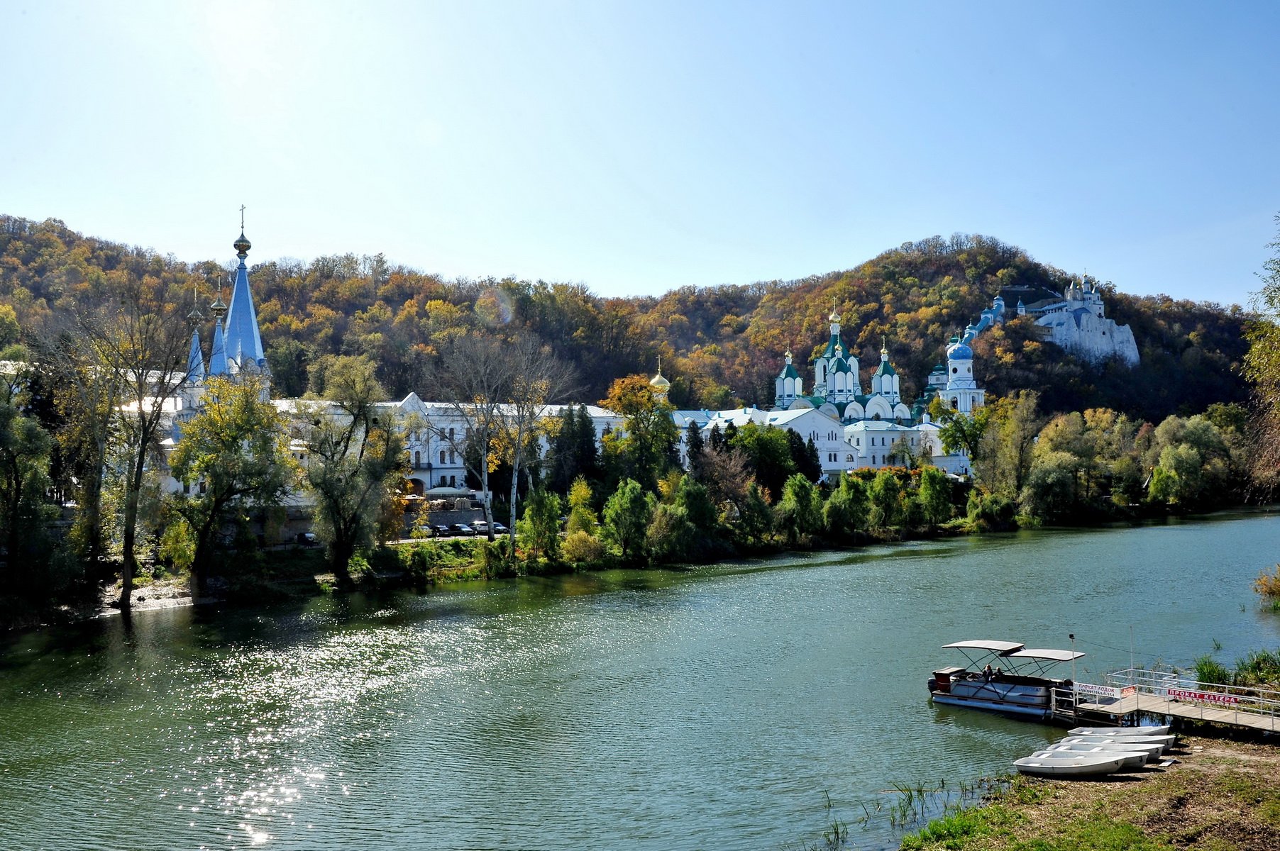 Донбас – це не тільки терикони та заводські труби, як його собі уявляє більшість українців. У ньому є чимало чарівних та затишних куточків з дивовижною природою, де варто побувати. Мабуть найбільш цікавим з того, що ми побачили під час подорожі, було курортне містечко Святогірськ на самій півночі Донецької області. Тут заповідні ліси з віковими соснами та дубами оточують крейдяні гори, які омиває красень Сіверський Донець, а повітря кришталево чисте і цілюще. У селищі досить розвинута туристична інфраструктура: дитячі табори, багато санаторіїв та готелів. Є навіть чотирьохзіркові. І хоча восени відпочиваючих в них значно меншає, туристичний сезон тут не закінчується ніколи завдяки шикарній природі та духовній святині – однієї з трьох православних лавр України, старовинній Свято-Успенській Святогорській лаврі.