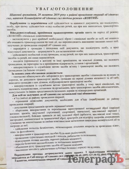 Оголошення про те що на території введено "жовтий" режим