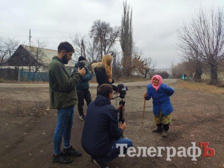 Місцева мешканка Золотого-4 Тетяна Сергієнко, йдучи до магазину, спілкується з кременчуцькими та полтавськими журналістами