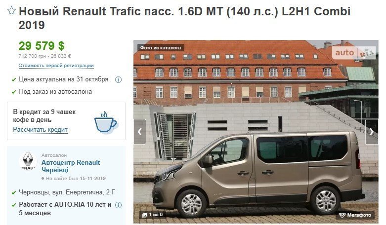 Як вказано у звіті в системі ProZorro, підприємство купило Renault Trafic Combi 1,6D (140 hp) MT6 [PG1E1 212SA6] — тобто з максимальним дизельним двигуном 1,6 л, 140 кінських сил; з ручною коробкою передач. У дужках — модель авто, за якою можна оцінити вартість покупки.