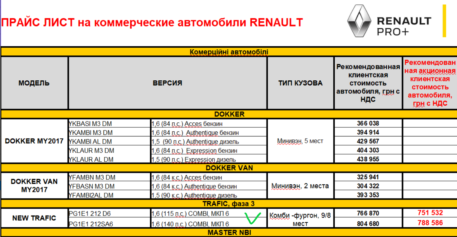 Подивимося інший прайс на Renault: ми відшукали конкретну модель, вказану у звіті про закупівлю КП «Кременчукводоканал»: рекомендована ціна 804 680 грн (водоканал купив на 29,2 тис грн дорожче), а якщо порівняти з акційною ціною авто — 788 585, то вийде, що підприємство переплатило 45 тис грн.