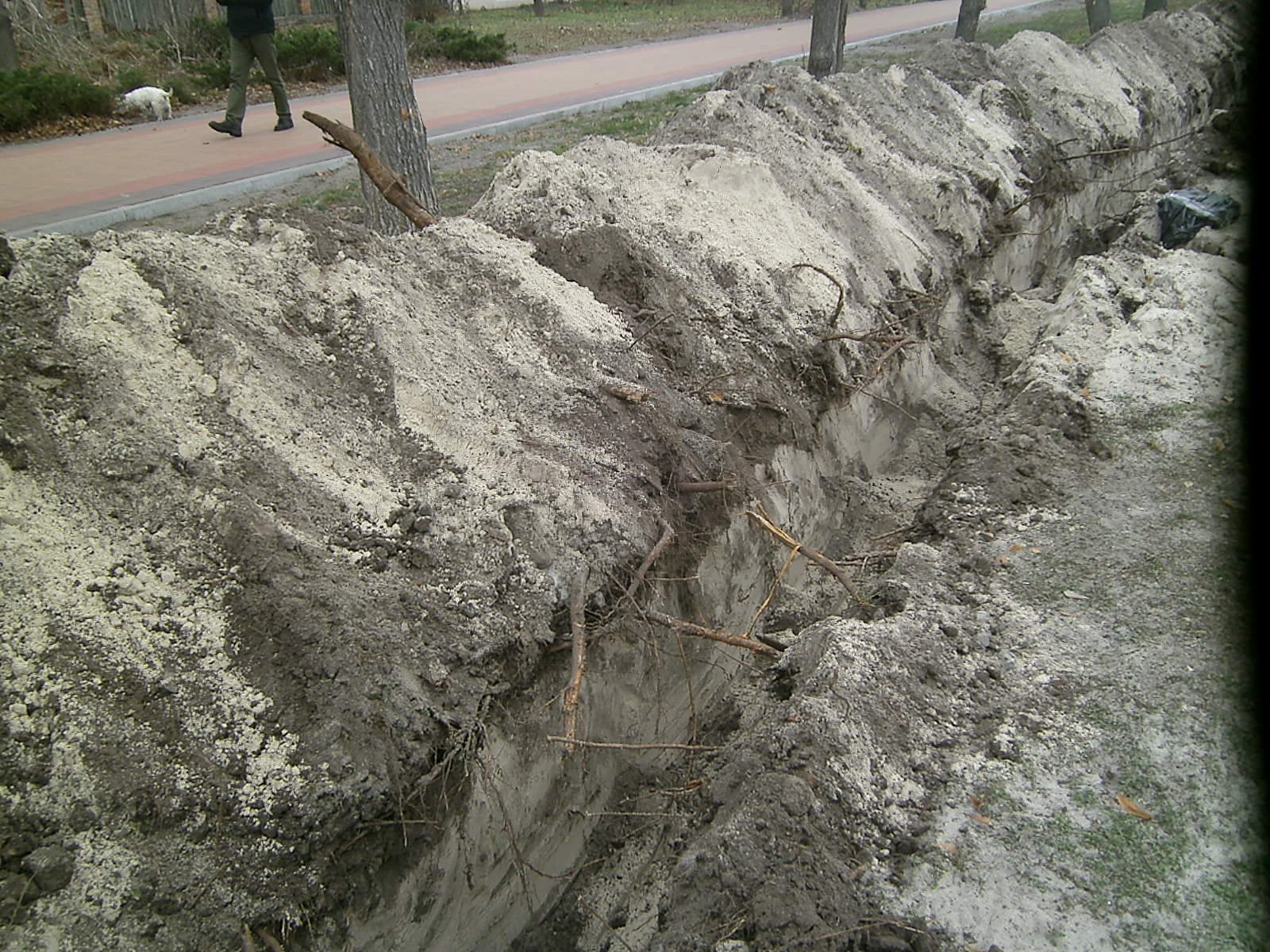 После того, как «Олевия» зароет траншею, никто уже не докажет, что здоровые крупномерные парковые деревья были умышленно повреждены, их корни обрубили.