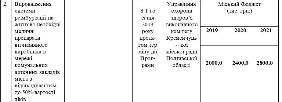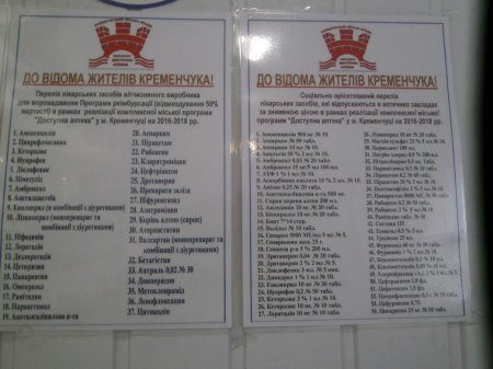 Городская программа «Доступная аптека» создана в 2016 году. Она состоит из двух частей – программы реимбурсации и программы открытия аптечных пунктов в отдаленных микрорайонах Кременчуга.