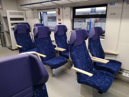 Поезд состоит из трех вагонов. Наиболее просторным является промежуточный вагон, в котором предусмотрено 61 место по схеме 2х2, имеется санитарный модуль. В одном из головных вагонов 58 мест по схеме 2х3, там же имеется купе стюарда. В другом головном вагоне - 51 место, в этом вагоне находится санитарный модуль увеличенного размера для пассажиров с особыми потребностями, есть место для колясок. Всего поезд рассчитан на 470 пассажиров с учетом стоячих мест.