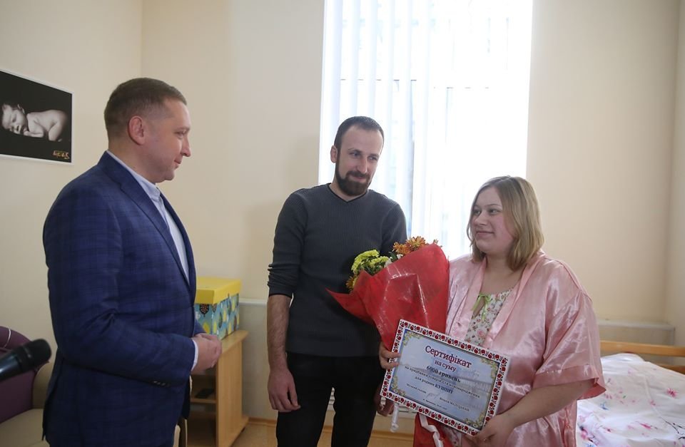 До речі, матусі, які народили першими в Міському пологовому будинку та пологовому будинку лікарні «Правобережна», отримали грошовий сертифікат на суму 6 000 гривень, решта молодих матусь – сертифікати на 4 000 гривень. За ці кошти сім’ї зможуть придбати товари для новонароджених в одному з магазинів міста.