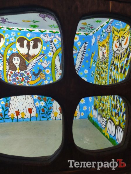 Потрапити у хату Поліни Райко можна також через жовті дверцята. Там маленька українська хата, яка повністю розписана малюнками, що повторюють розпис української художниці-примітивістки. Протягом двох тижнів будиночок розфарбовували співробітники фонду імені художниці. Цікаво, що сама художниця почала малювати у 69 років. Жінка купувала фарби на свою пенсію за копійки, тому невідомо, скільки років зможуть зберігатися її дивовижні малюнки. Обов'язково поїдьте в Олешки, рідне село художниці, там стоїть розписаний нею будинок.