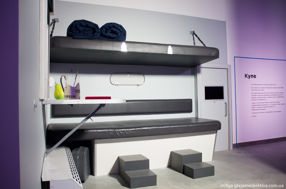 Усі мандрівники лише на одній виставці можуть уявити ніби потягом подорожують Україною. На шляху ви потрапляєте у 7 зон: «Купе», «Перше знайомство», «Відверта бесіда», «Сон», «Зупинка», «Здача купе», «Прибуття». Під час такої «подорожі», за задумом авторів, відвідувачі повинні заново відкрити для себе країну та дізнатися про неї багато нового.