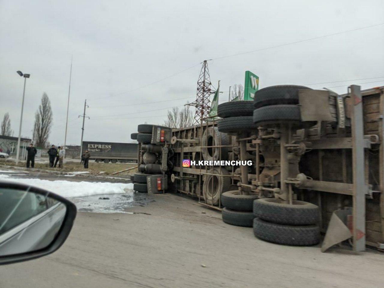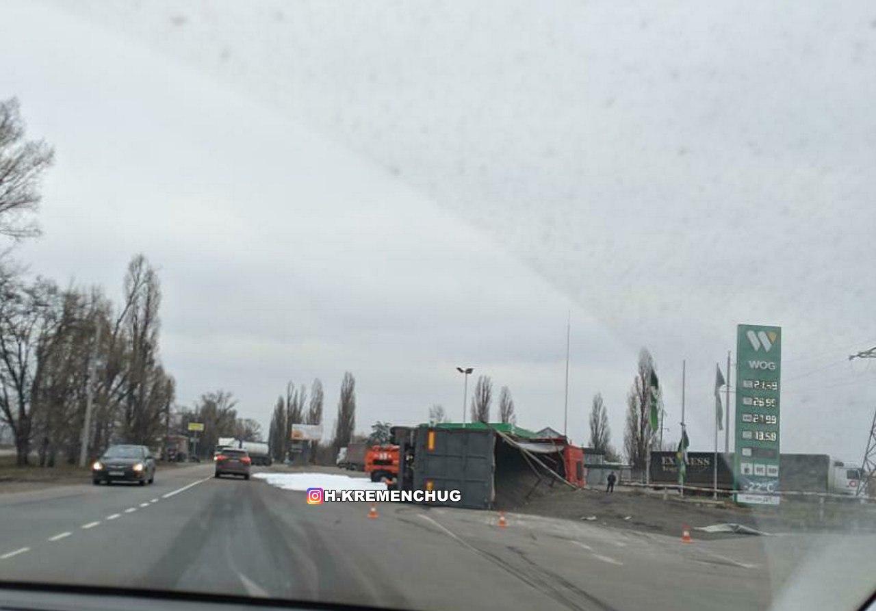25 січня у Кременчуці на Ярмарковій перекинулась фура з соняшниковим насінням. Інформація про це з’явилась на телеграм-каналі h.kremenchug.