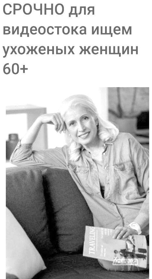 Засветить свой фейс на ТВ можно, даже если вам немножко “за 30” и глубоко “за 80”. Потому что нужны разные образы: не везде требуются топ-модели. Например, для рекламы про антивозрастной уход нужны женщины в возрасте. А для видеостоков ищут ухоженных женщин 60+. За день съемки обещают 1000-1200 грн и кофе с печеньками: главное, выдавливать из себя эмоции на камеру: плакать, смеяться. Или нужна “фактурная бабушка” возрастом от 50 до 80 лет, худощавая. Все, что нужно – одевать внуков в кадре, еще и обещают немного заплатить.
