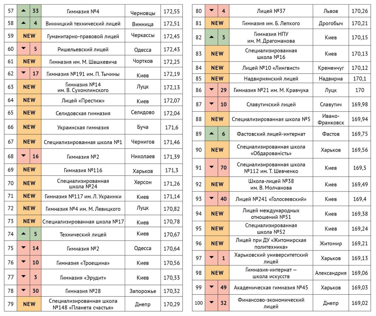 В ТОП-100 попали только два учебных заведения Полтавской области — непосредственно Кременчугский лицей №10 и Полтавская специализированная школа №3, которая разместилась на 47 месте.