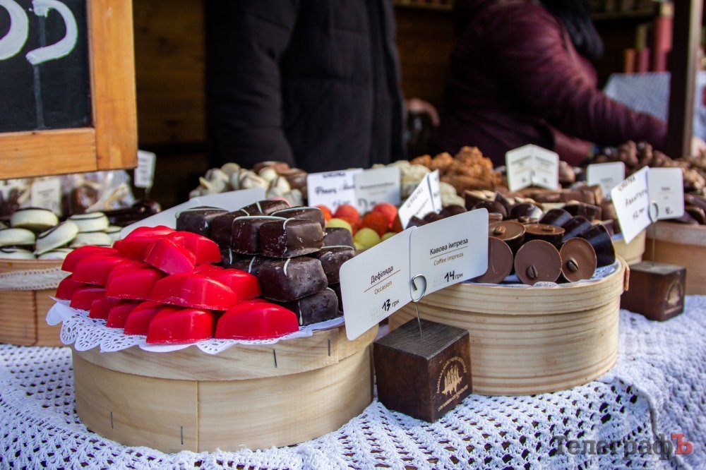 Крім солодощів на хмільних напоїв тут продають шоколадні цукерки та вироби ручної роботи.