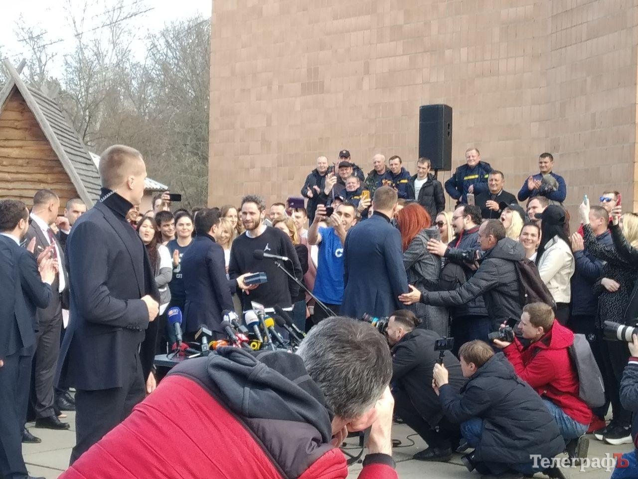 12.16 До евакуйованих підійшли Зеленський та Синєгубов. Президент подякував лікарям, рятувальникам та місцевим мешканцям. Також Зеленський запропонував іноземцям не покидати поки Україну, а зайнятися туризмом.