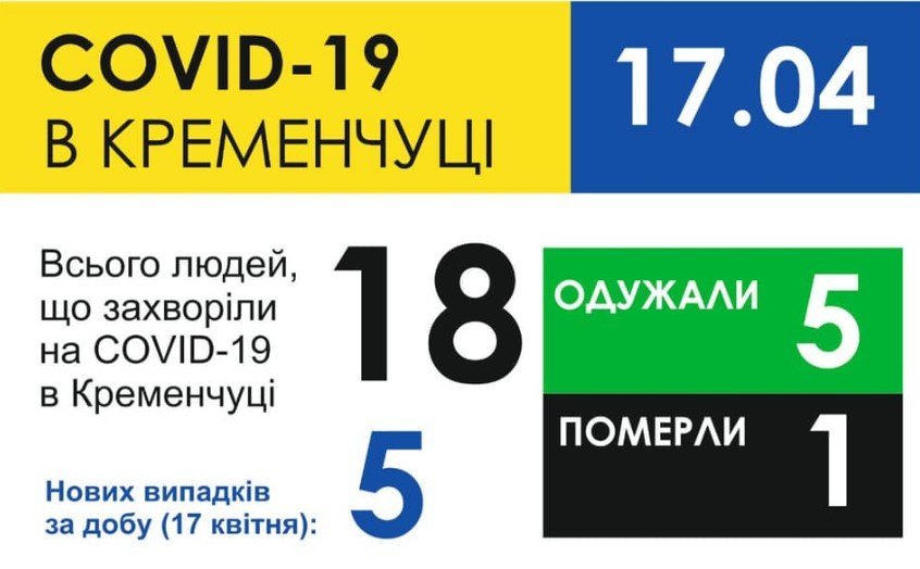 Таким чином станом на 17 квітня у Кременчуці 18 городян захворіли на Covid 19.