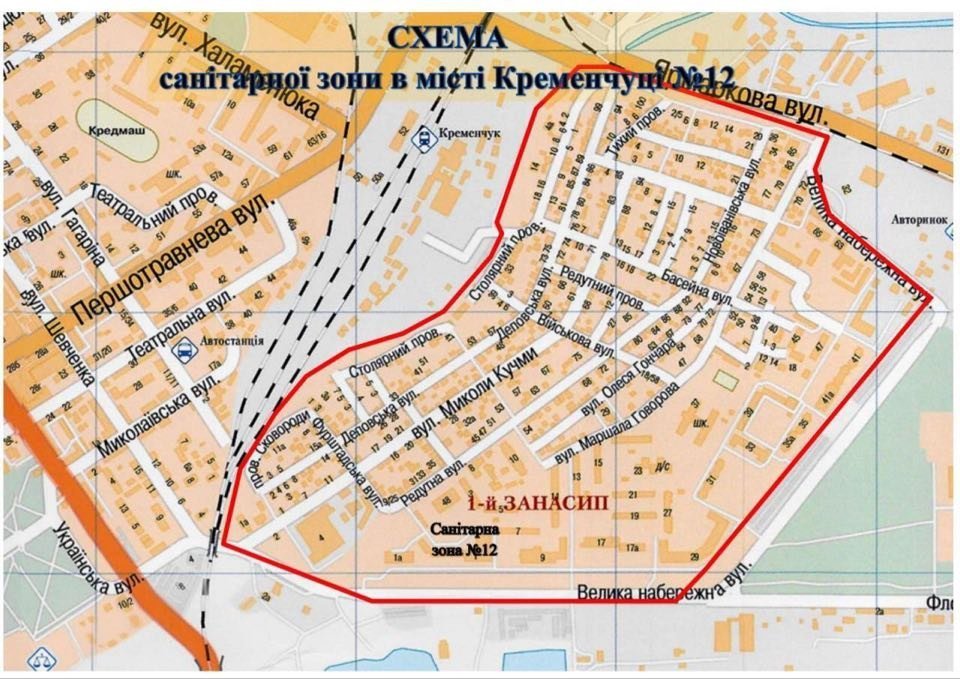 Найбільша санзона у Кременчуці на сьогоднішній день – район Першого Занасипу. У цю зону увійшли всі багатоповерхові будинки та приватний сектор, а також хлібокомбінат.