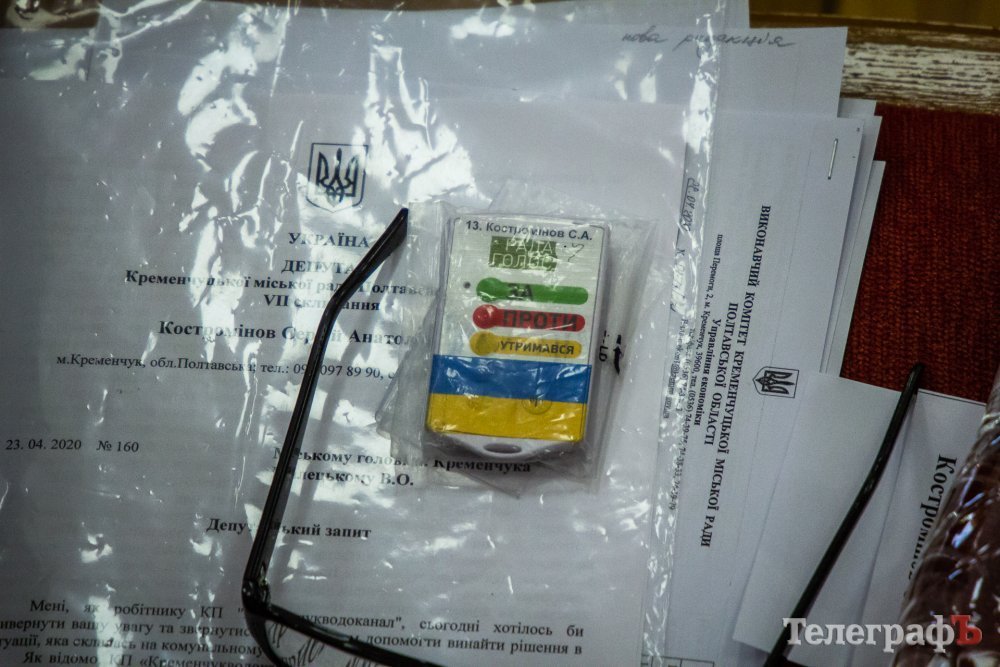На початку сесії міський голова Віталій Малецький побажав усім 36,6. Депутати сидять по двоє в одному ряду, щоб витримувати соціальну дистанцію. Голосування відбуватиметься за допомогою системи «Рада-Голос» – кожному депутату видали персональний пульт для голосування.