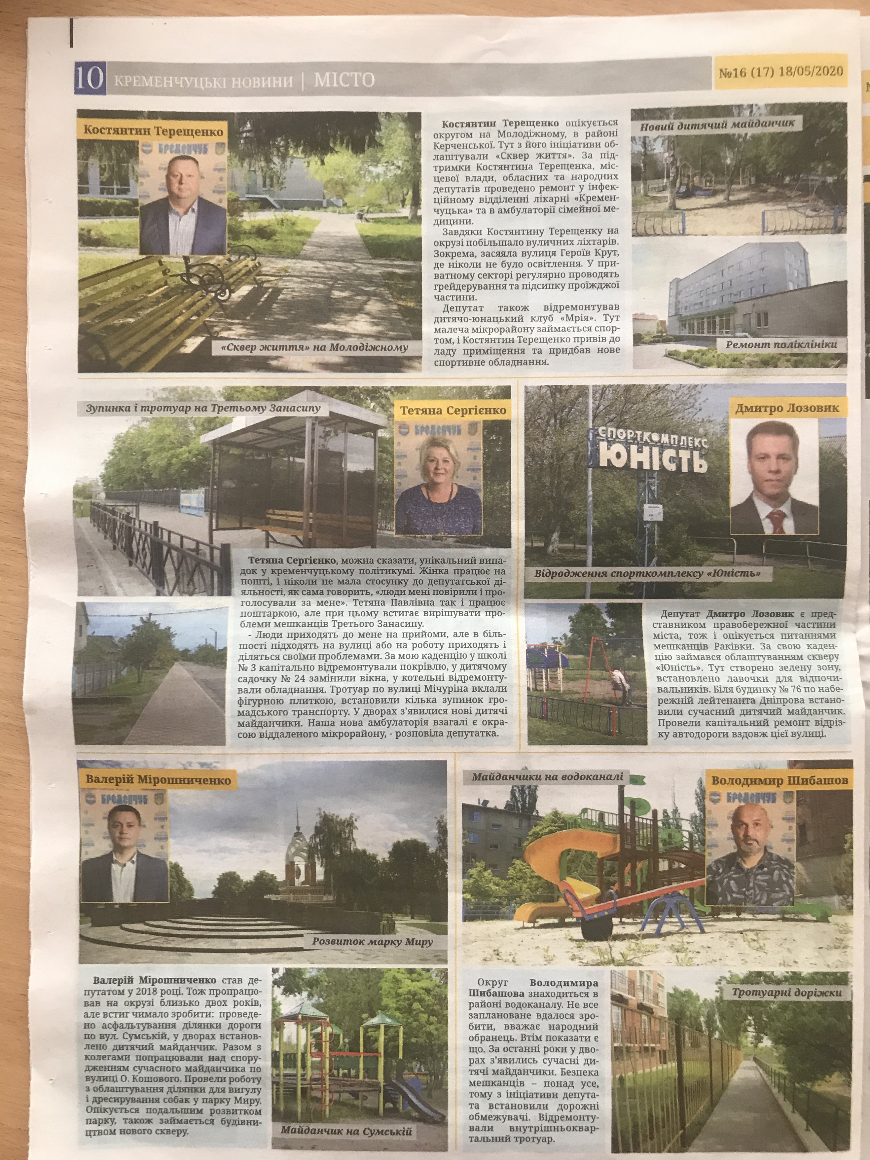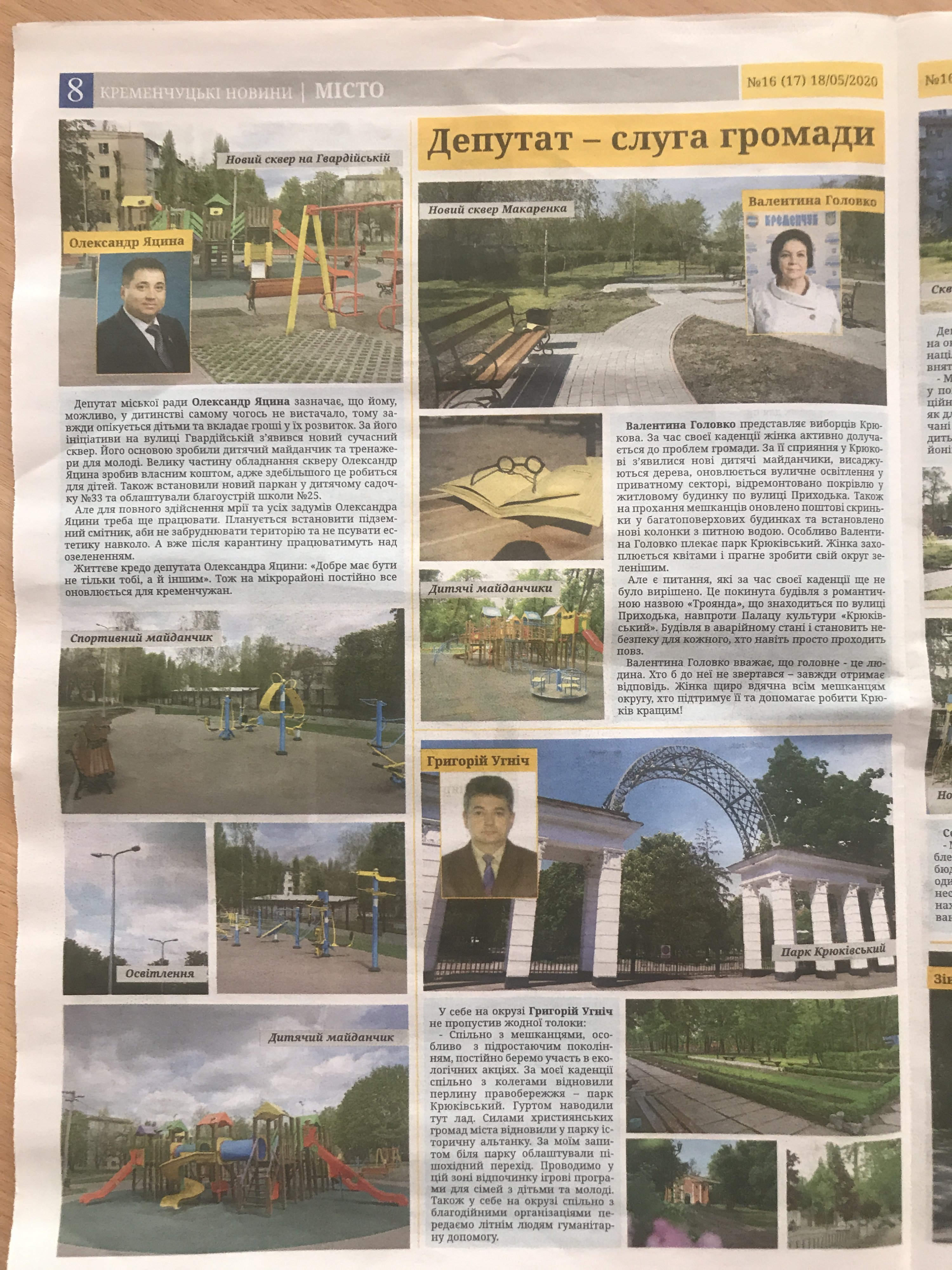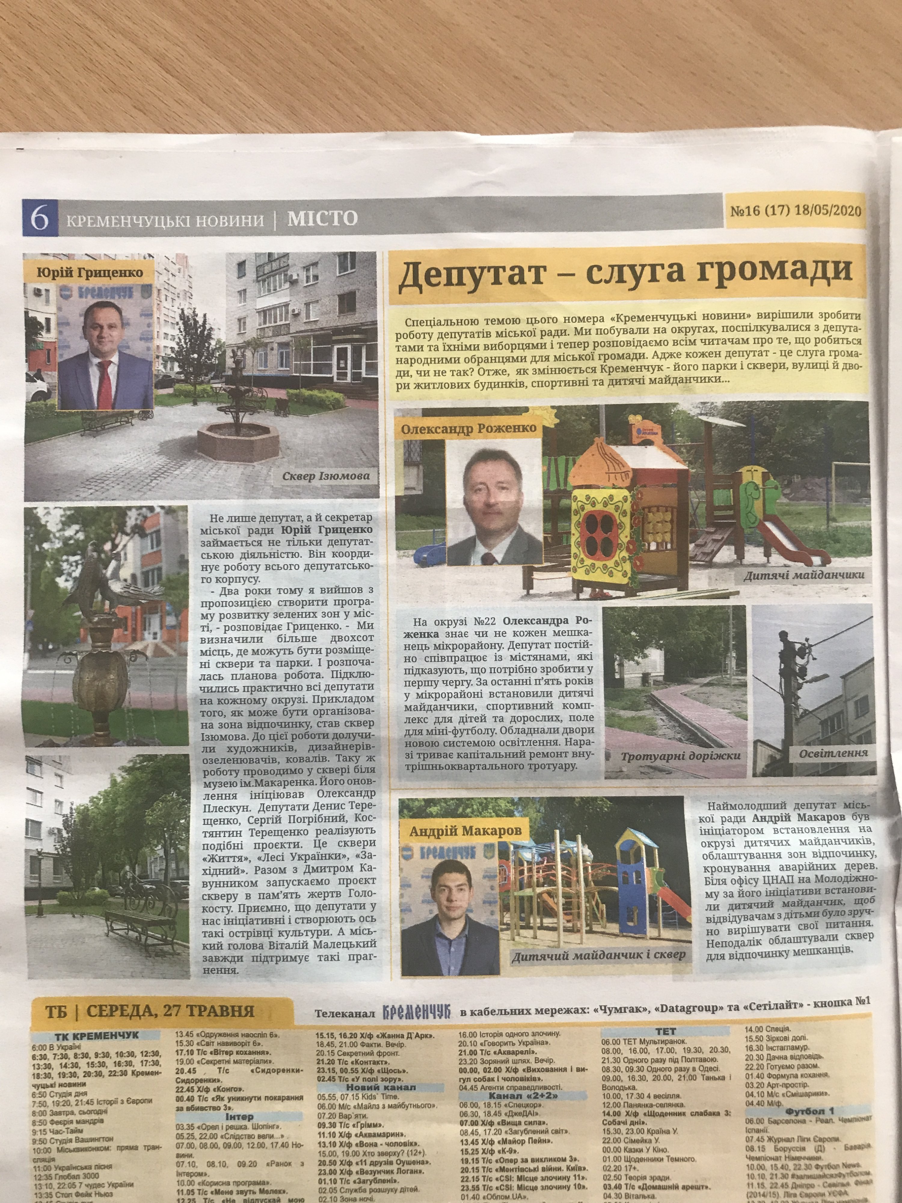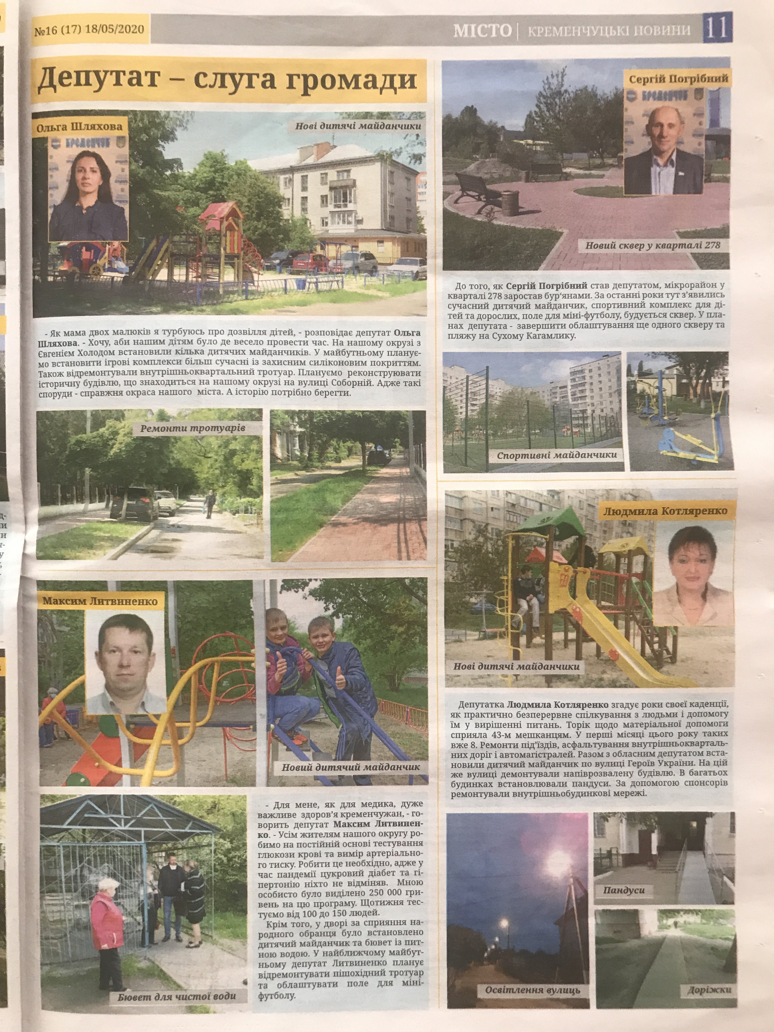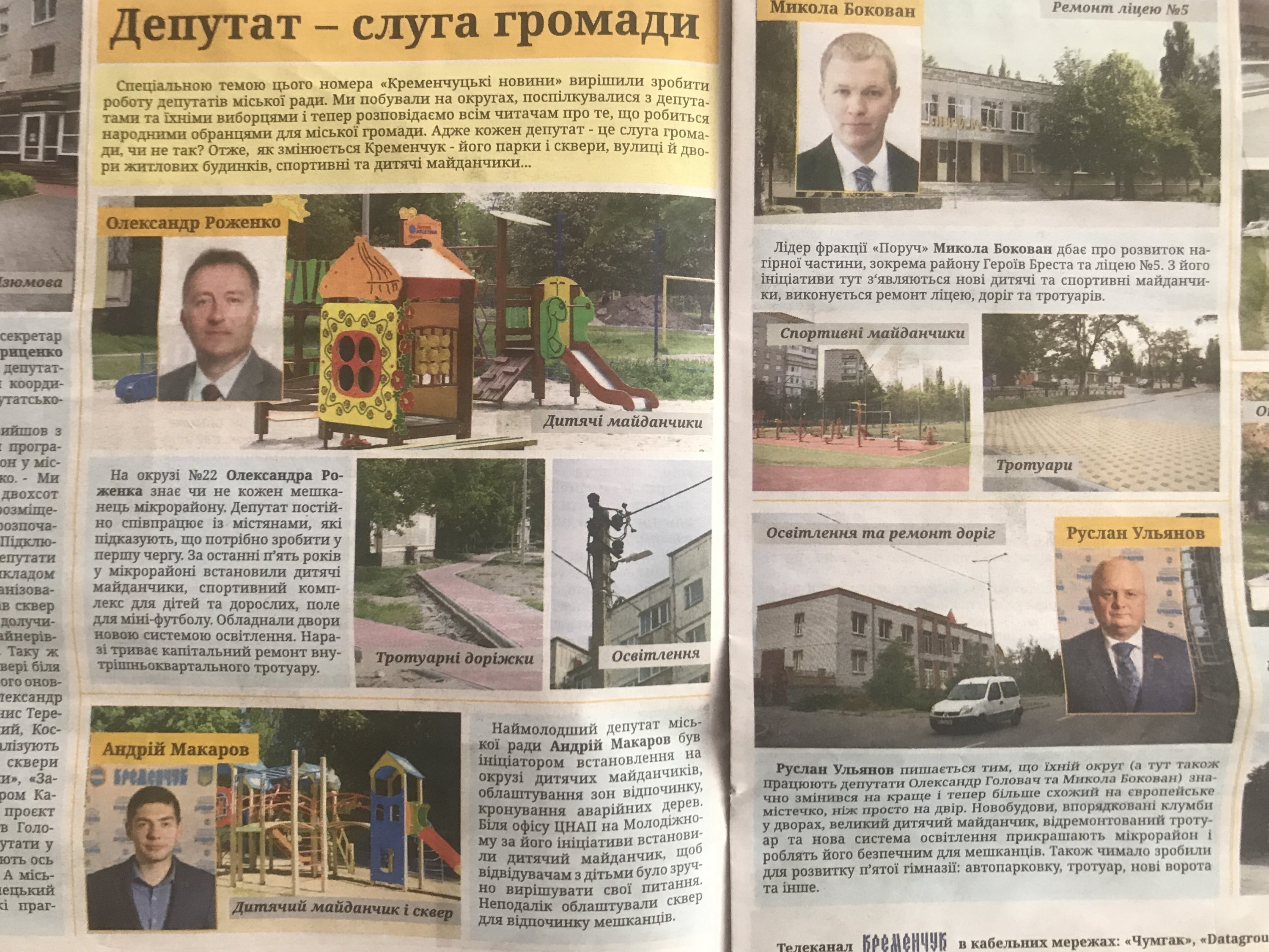 Перед вами очередной выпуск «Кременчуцьких новин». Топ-материал – «Депутат – слуга громади». На трех цветных разворотах – цветные портреты доблестных депутатов Кременчугского горсовета и цветные фотографии их добрых дел. В первой серии сериала «Депутат – слуга громади» представлены 24 депутата.