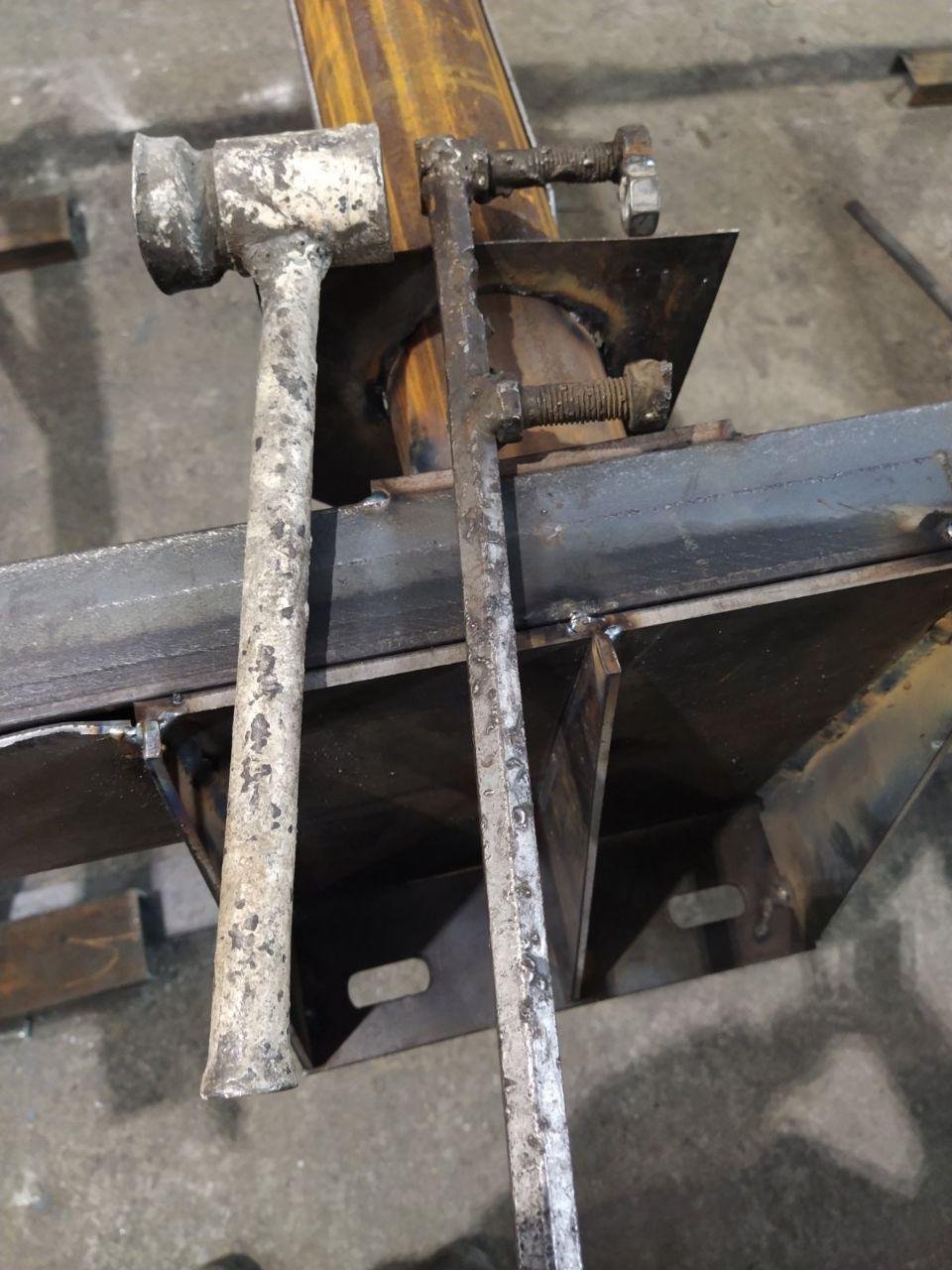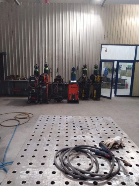 А вот рабочее место Андрея в Польше. Вместо двух «козлов» в сварочном цеху — стол с отверстиями, чтобы вставлять в них струбцины и прижимать части свариваемых деталей.