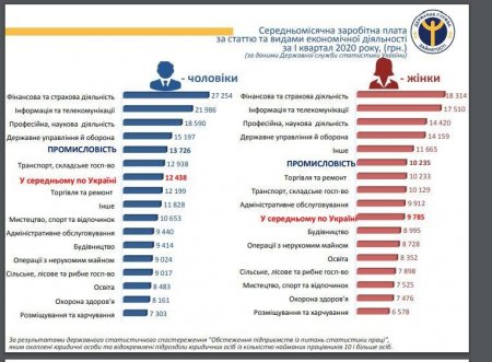 По статистике, в Украине больше всего получают в финансовой и страховой сферах: более 27 тыс грн, за ней телекоммуникация – 22 тыс грн. Женщины в Украине получают меньше чем мужчины. Если для мужчин средняя зарплата 12,4 тыс грн, то для женщин – 9,8 тыс грн.