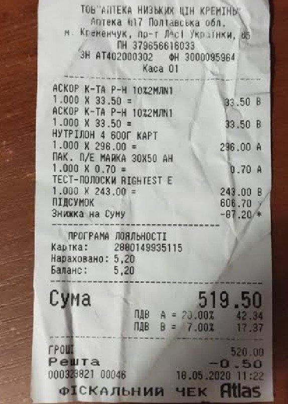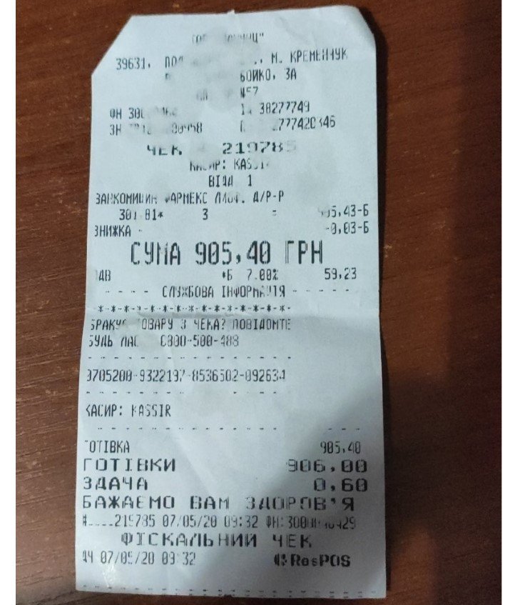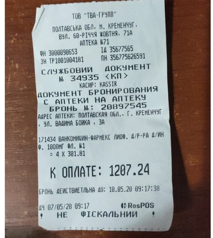 Несмотря на то, что Людмила Дяченко была медработником, и несмотря на то, что руководитель кременчугского горздрава Середа утверждал, что в Кременчуге пациентов с COVID-19 лечат бесплатно, бесплатным её лечение не было. Вот чеки на ванкомицин – антибиотик, применяется при лечении пневмоний. Это не все чеки, а только за два дня. Вот что говорит Иван Иванович:
