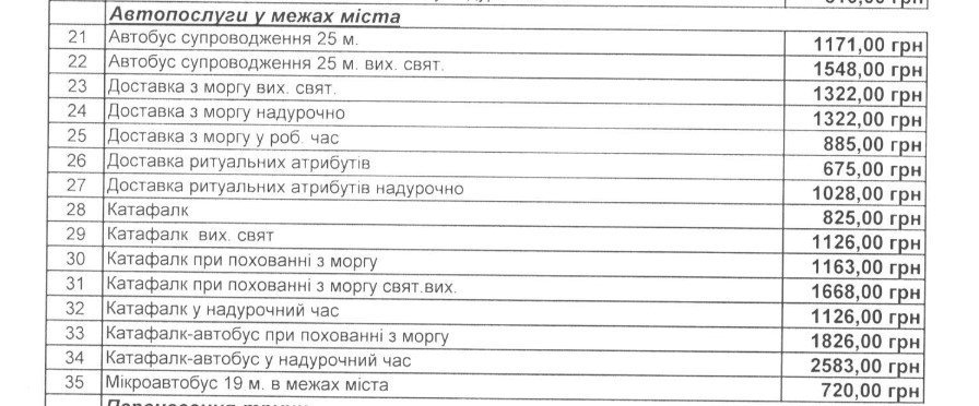 «В рабочее время» – это важно. Потому что дальше в счете идет строка «перенос гроба» и цена – 2860 гривен. Возникает вопрос – почему так дорого?