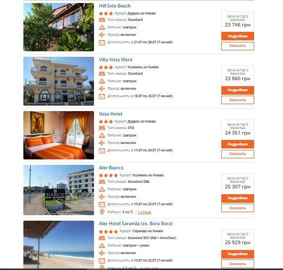 Стоимость отдыха самая приятная в Албании – 500 евро в трехзведочном отеле с завтраком. В Хорватии и Греции – 750 евро. В Болгарию, если отправиться автобусом, стоимость около 400 евро. Сами турагентства говорят, что это дешевле, чем отдых в Украине: сперва даже хотели продавать путевки по Украине, но потом махнули рукой: необоснованные цены при низком сервисе.