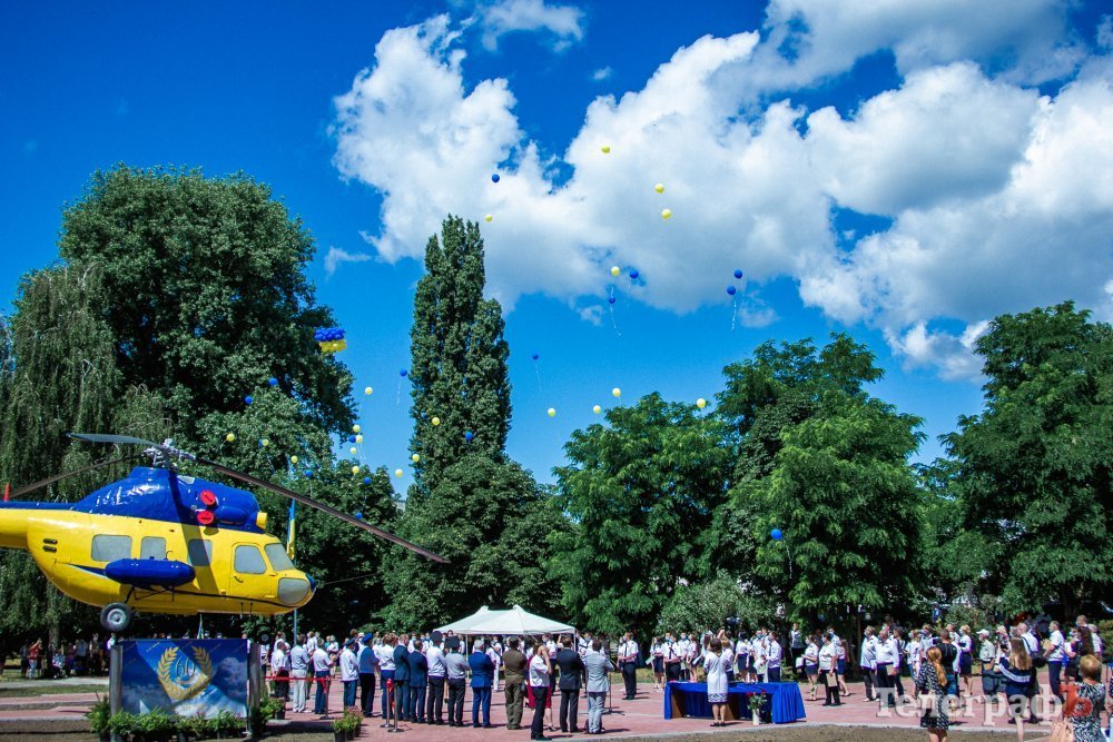 Сьогодні відбулося відкриття нової локації у Придніпровському парку – меморіалу «Слави вертольотчикам». Червону стрічку одночасно перерізали ректор ХНУВС Дмитро Швець та заступник міністра МВС України Сергій Гончаров, тим самим офіційно відкривши новий кременчуцький меморіал, де і пройшла урочиста лінійка для випускників КЛК.