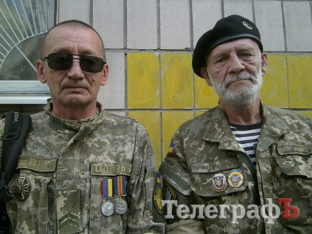 АТОвців прийшли підтримати члени Всеукраїнського об’єднання ветеранів України Леонід Васильченко (з плакатом «Ні капітуляції!») та Олександр Харченко (справа від нього).