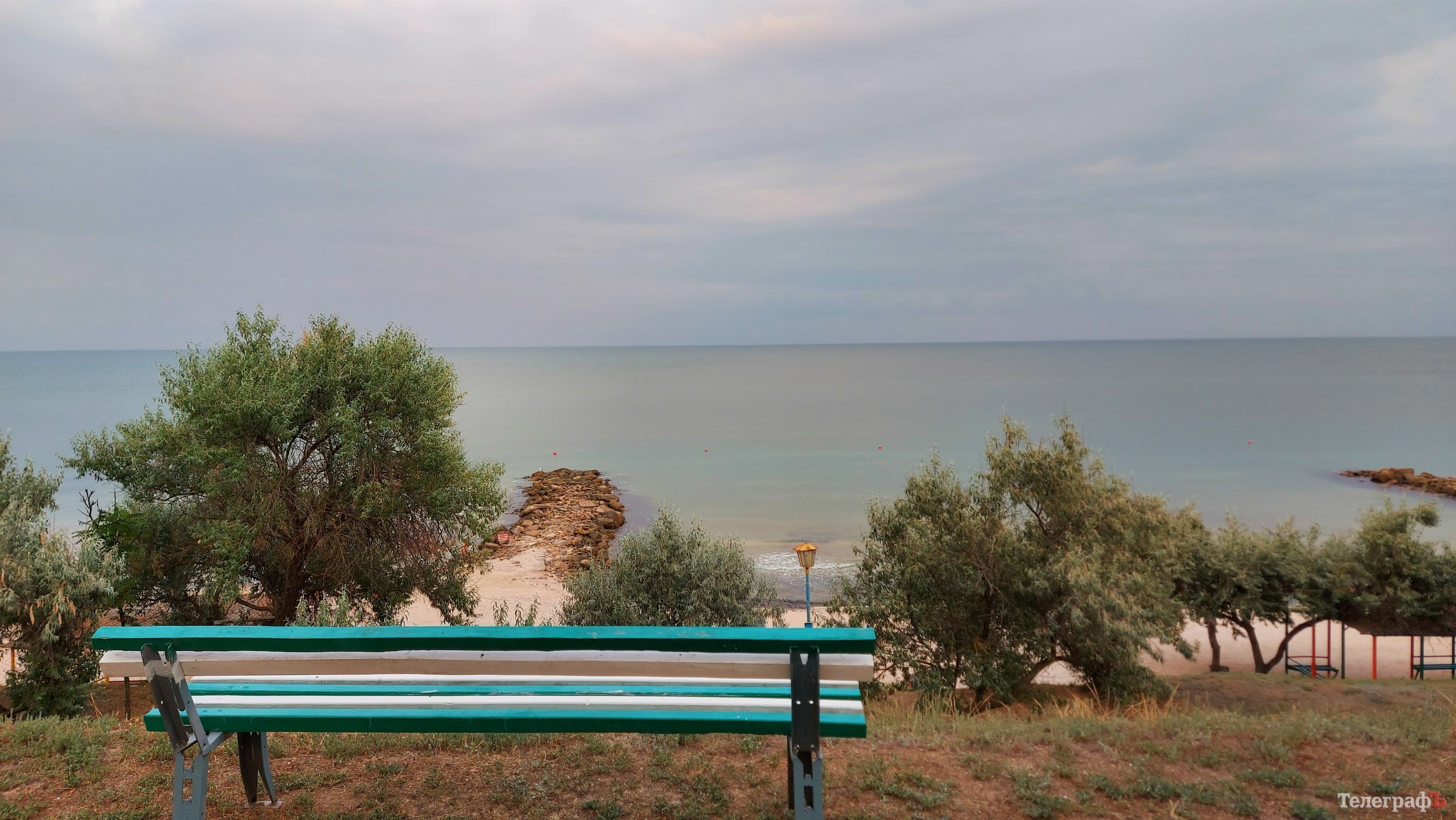 Атмосферное место – лавочка на холме с видом на море