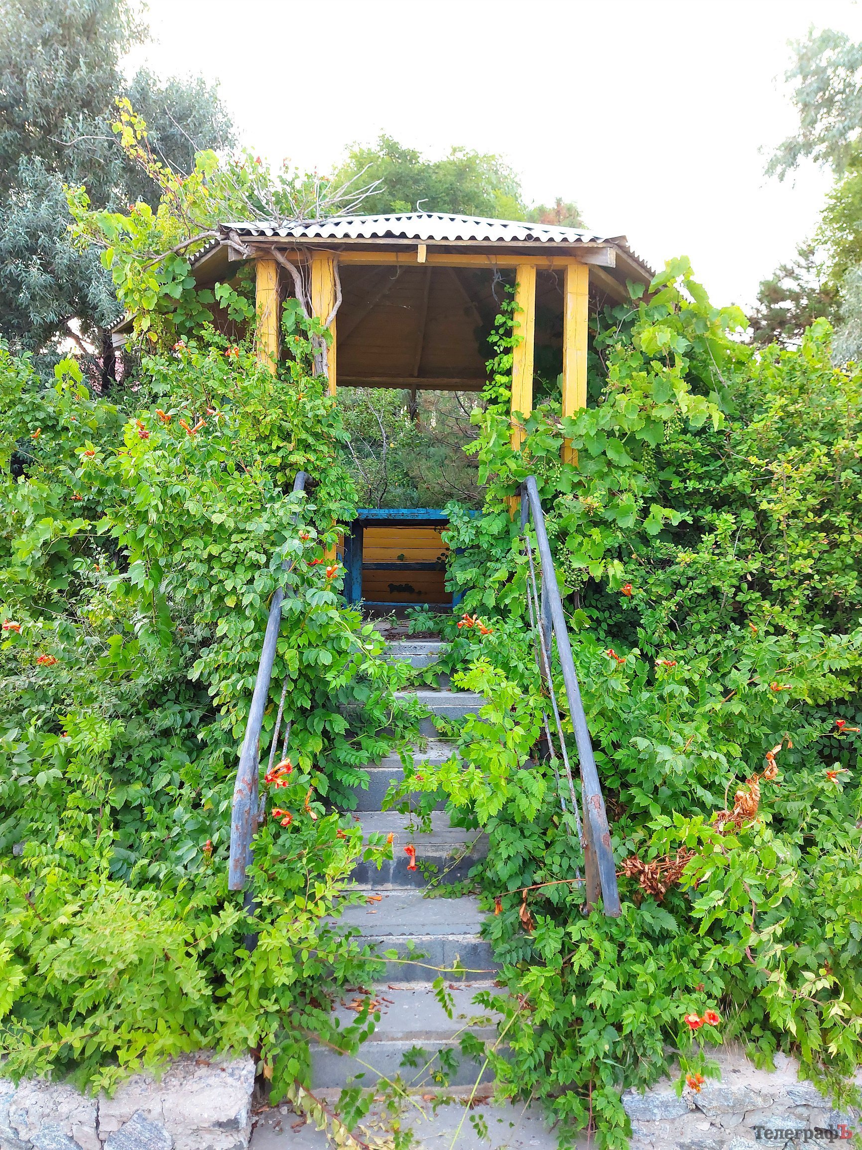 Природа пытается поглотить беседку на набережной «Металлурга»