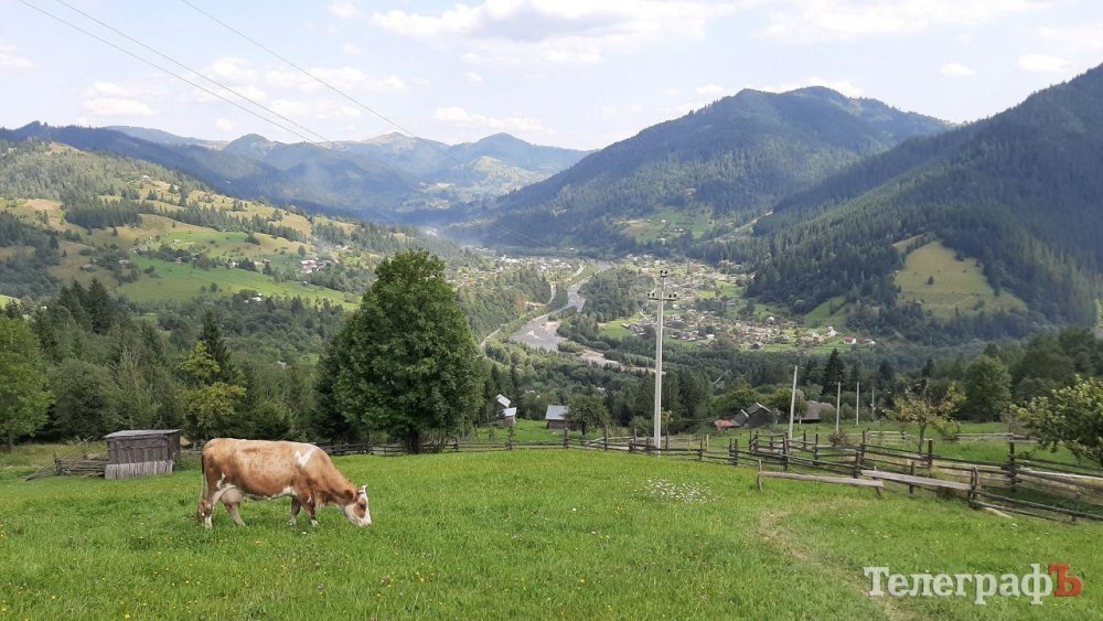 Крошечное село словно закрыто горным кольцом, внутри которого протекает горная река Черемош. Домики в основном расположены или в горах, или за рекой, поэтому трассы и автомобилей не слышно и не видно вообще. Тишина. Только звон колокольчиков, которые вешают на коров, и тявканье собак. Сюда еще не дошла цивилизация, как в Буковеле в виде высоток. И настроили меньше дворцов, чем в соседней Верховине. Поэтому вид на горы открываются волшебный, хотя есть пару дворцов-гигантов, портящих аутентику и обзор. Видимо, никаких ограничений по строительству дворцов нет.