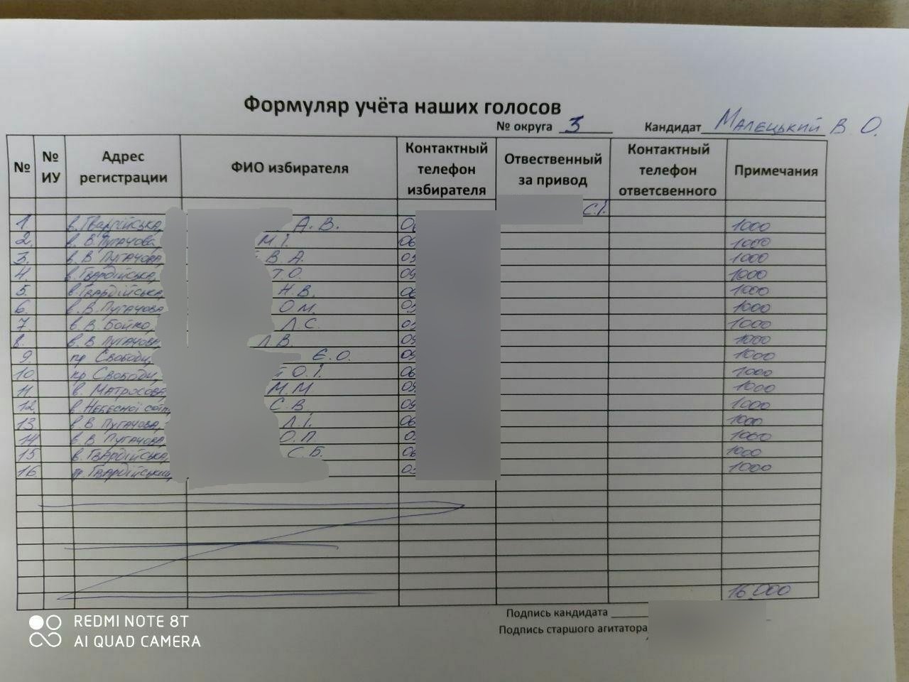 В одному з телеграм-каналів днями з’явився пост, де виклали списки людей. У списках зазначені персональні дані нібито учасників «сітки». Автор посту запевняє, що викладені фото перехоплені в учасника «сітки». Учасники «сітки» ймовірно за гроші формують попередні списки готових проголосувати. Їм розносять газети і збирають на суботники.